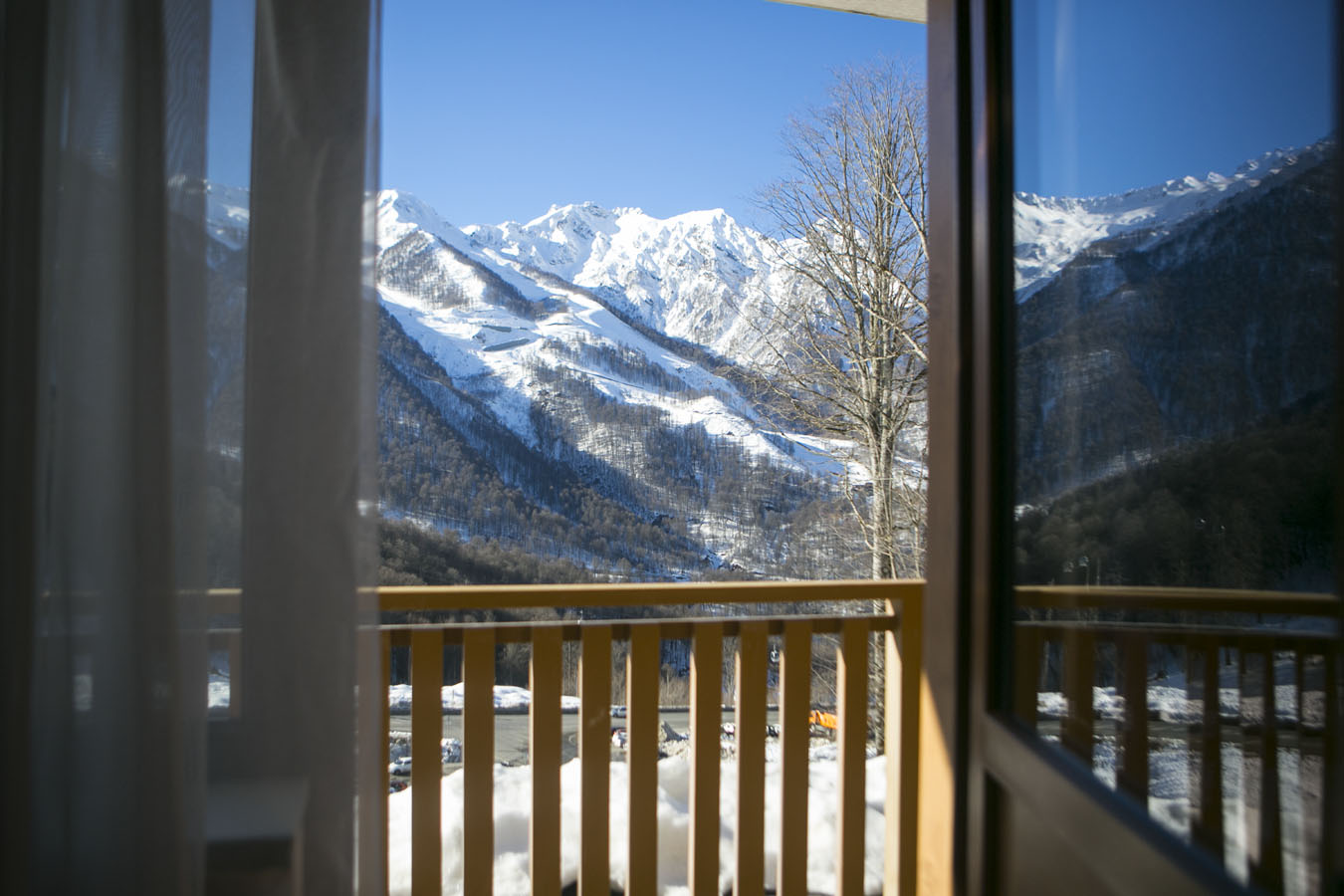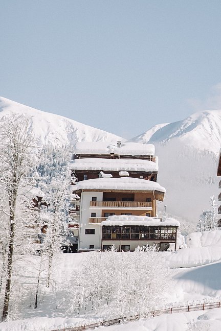 Поездом до ж/д станции Роза Хутор, далее на автобусе №535, 105, 105с, 105э, 163, 535э до остановки «Роза Хутор», далее пройти до канатной дороги «Олимпия» и проехать одну станцию до «Олимпия 1100 м», затем пройти 800 м до отеля.