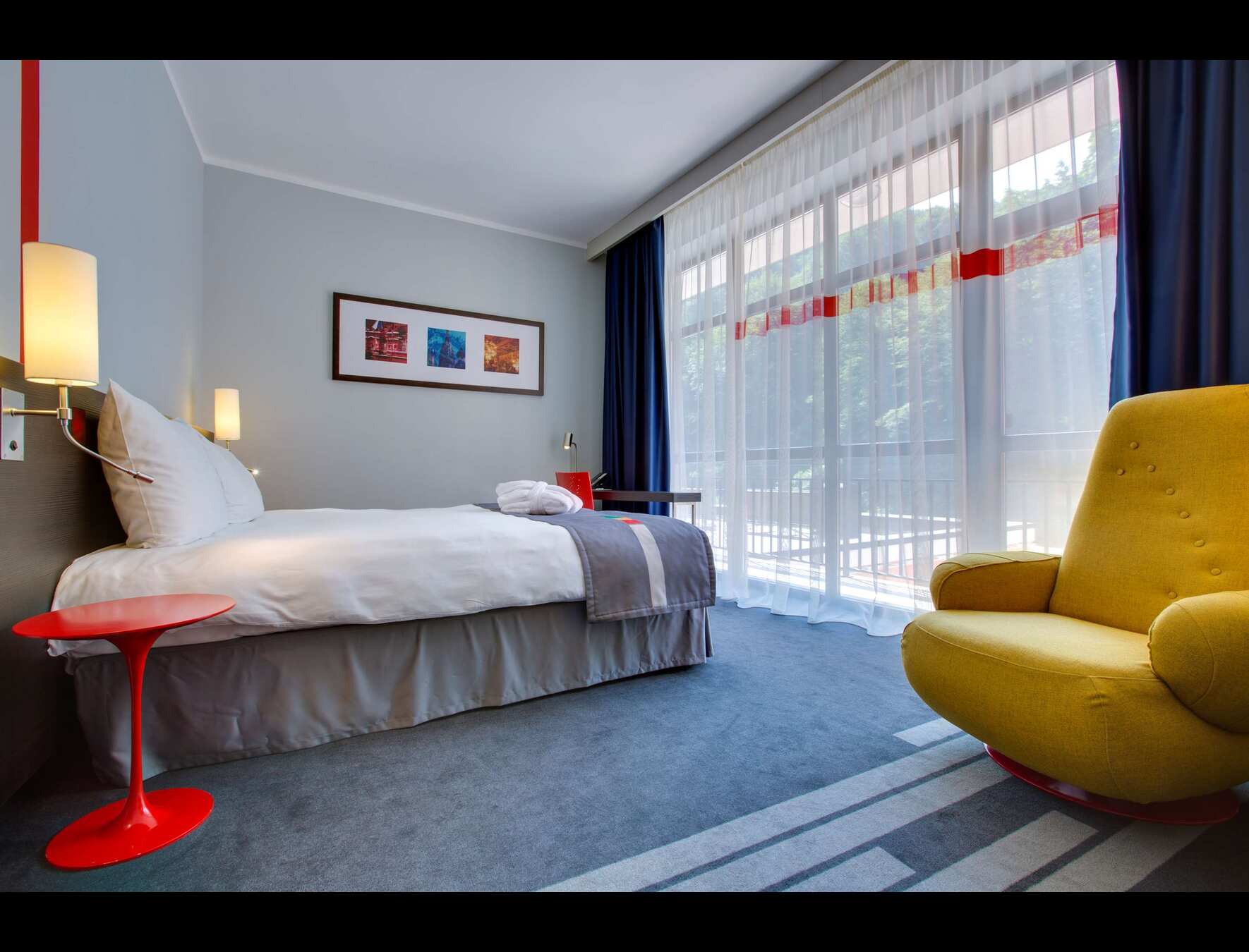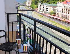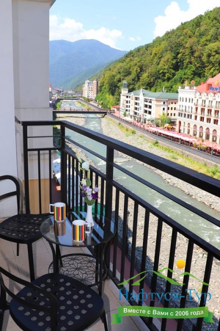 · В "Park inn" останавливались в июле. Бронировали улучшенный номер с хорошим видом. Заселили в 310-й. Вид действительно оказался открыточным - на Мзымту с красивой набережной и горы!!! Окна французские, номер с небольшим балконом - со столиком и стульями.