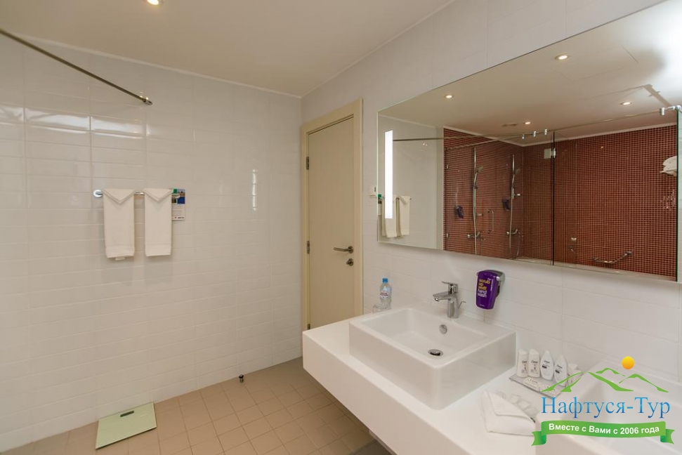 с душем или ванной, тапочки, фен, халат