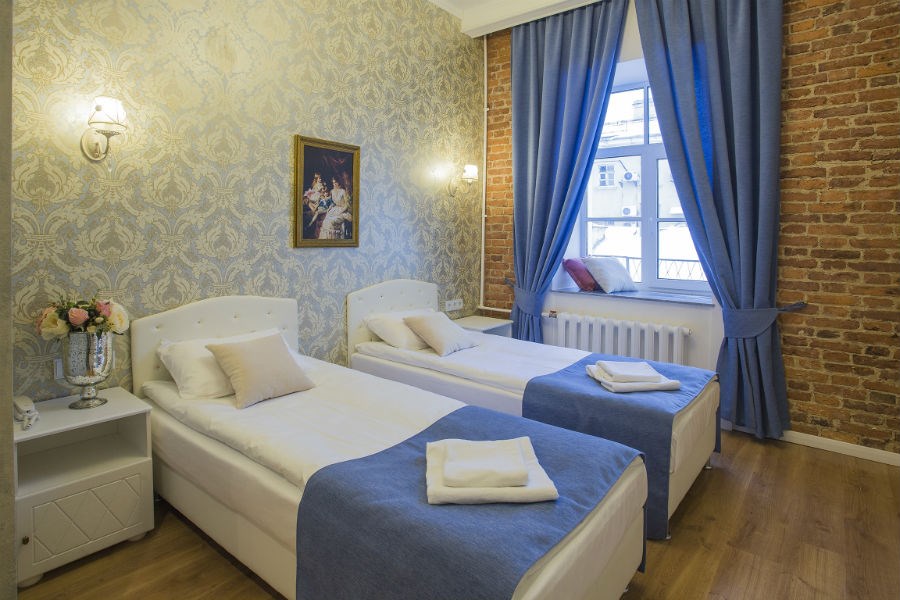 - от аэропорта Пулково: на автобусах 39, 39K до метро Московская. Затем от м. Московская (синяя ветка) до м. Невский проспект (выход на канал Грибоедова). При выходе из метро нужно повернуть налево. Отель находится во дворе Базилики Святой Екатерины. От метро идти ≈ 1 минуту пешком.