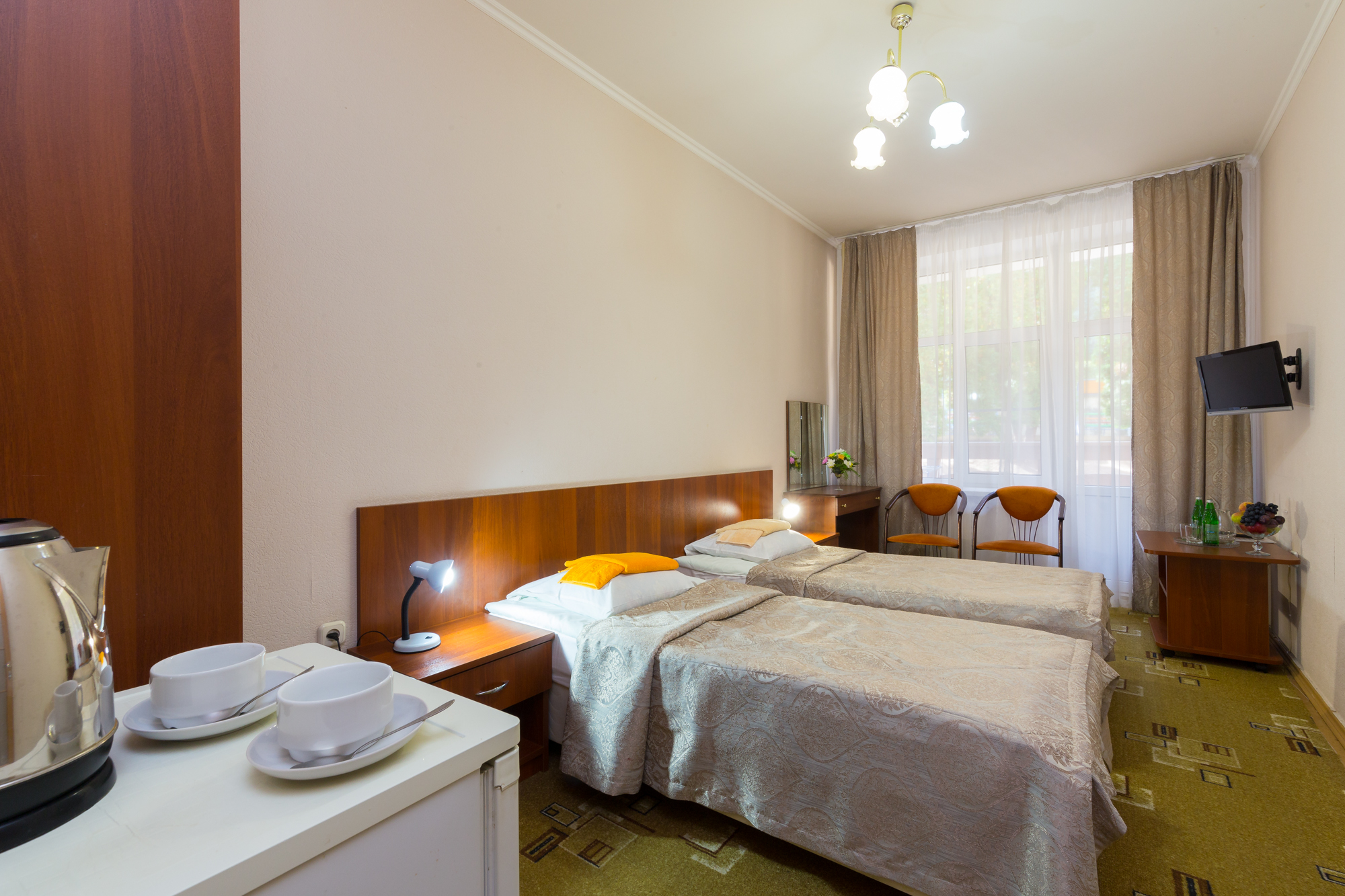 Если остановить свой выбор на 4-х звездочном уровне комфорта, то в этой категории самые привлекательную стоимость путевок и условия предлагает оздоровительный комплекс «СОЛНЕЧНЫЙ». Он находится в культурной части города-курорта, возле цирка и справедливо считается одним из самых популярных лечебно-оздоровительных заведений Кавминвод. Для любителей купаний и водных процедур следует особо выделить, что в «Солнечном» имеется два бассейна – большой (35х10 метров) крытый и открытый с подогреваемой водой, баром на воде.