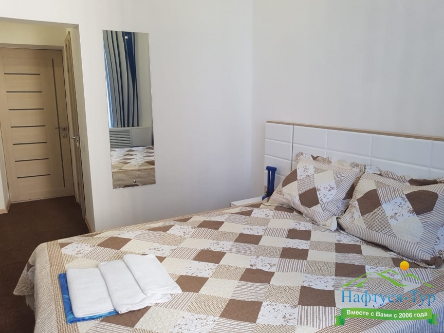 Отдыхали с женой в июне номер не большой но всё достаточно комфортно. Даже не замечали когда у нас убирали и меняли бельё. Приходим всё чисто. Есть номера с балконом но нам не повезло.Питание 50/50 зависит от смены,часто просто уходили в кафе.