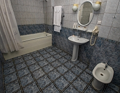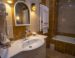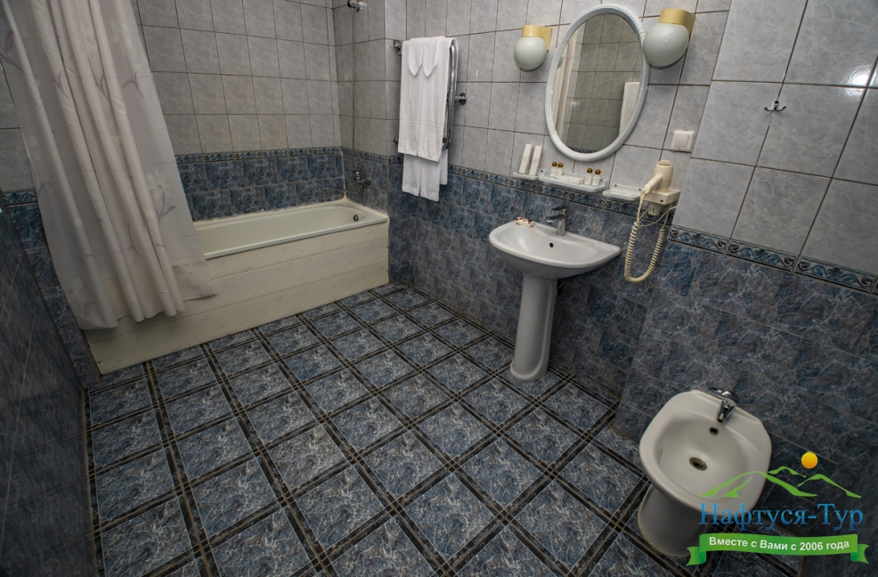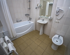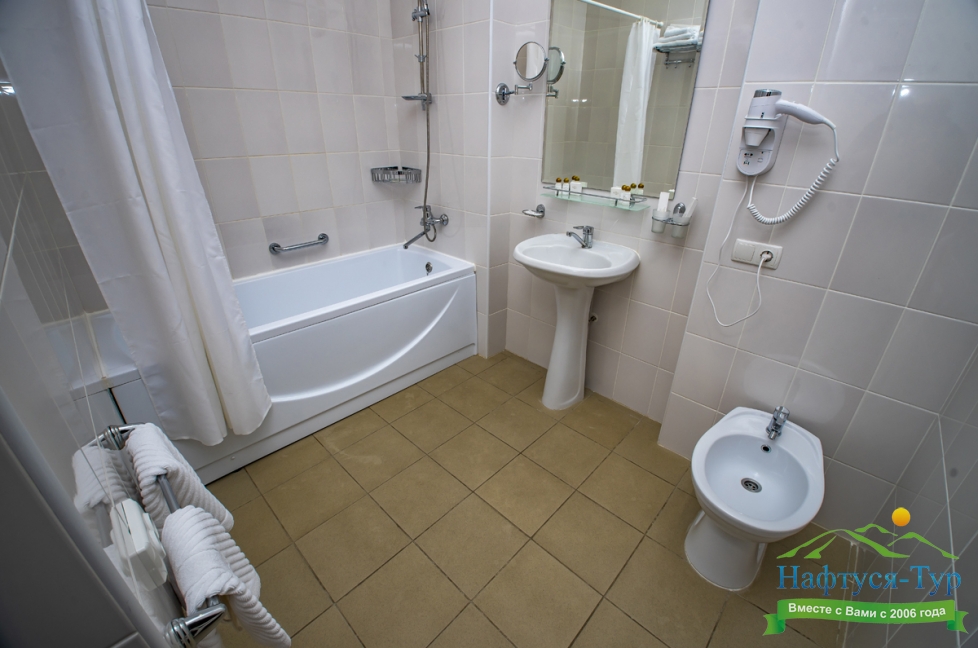 биде, с ванной, тапочки, туалетные принадлежности, фен, халат