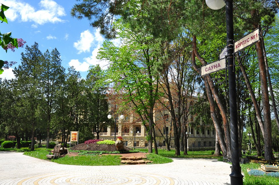 Лечебные источники и природа. Санаторий расположен в живописной природной зоне, богатой источниками, способствующими общему укреплению организма.