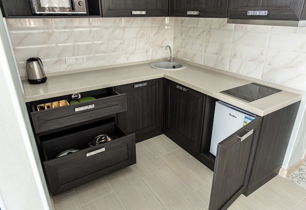 кондиционер, мини-холодильник, набор посуды, сейф, сплит-система, телевизор, телефон, утюг, электрочайник