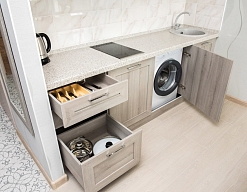 На заметку владельцам, можно было бы предлагать гостям варианты размещения с завтраками/обедами/ужинами на территории гостиницы Атлант, например, до которой около 10 минут пешком от апартаментов.