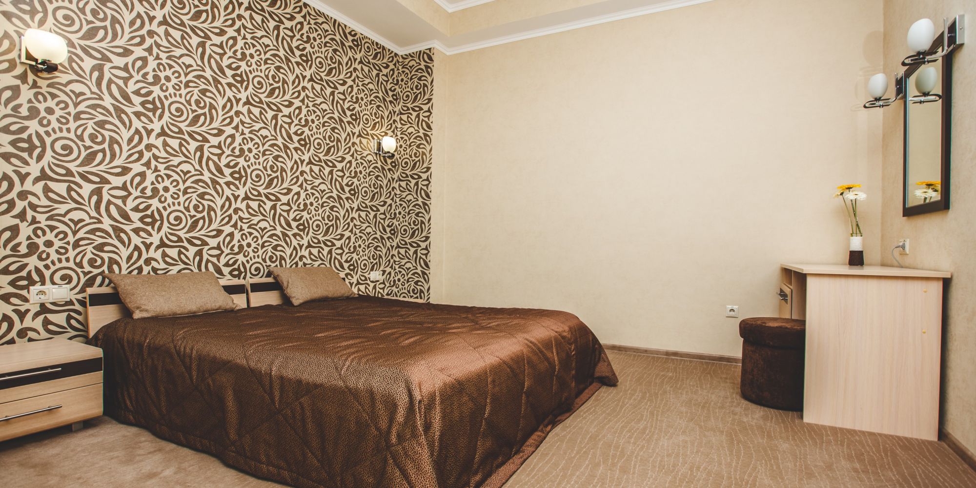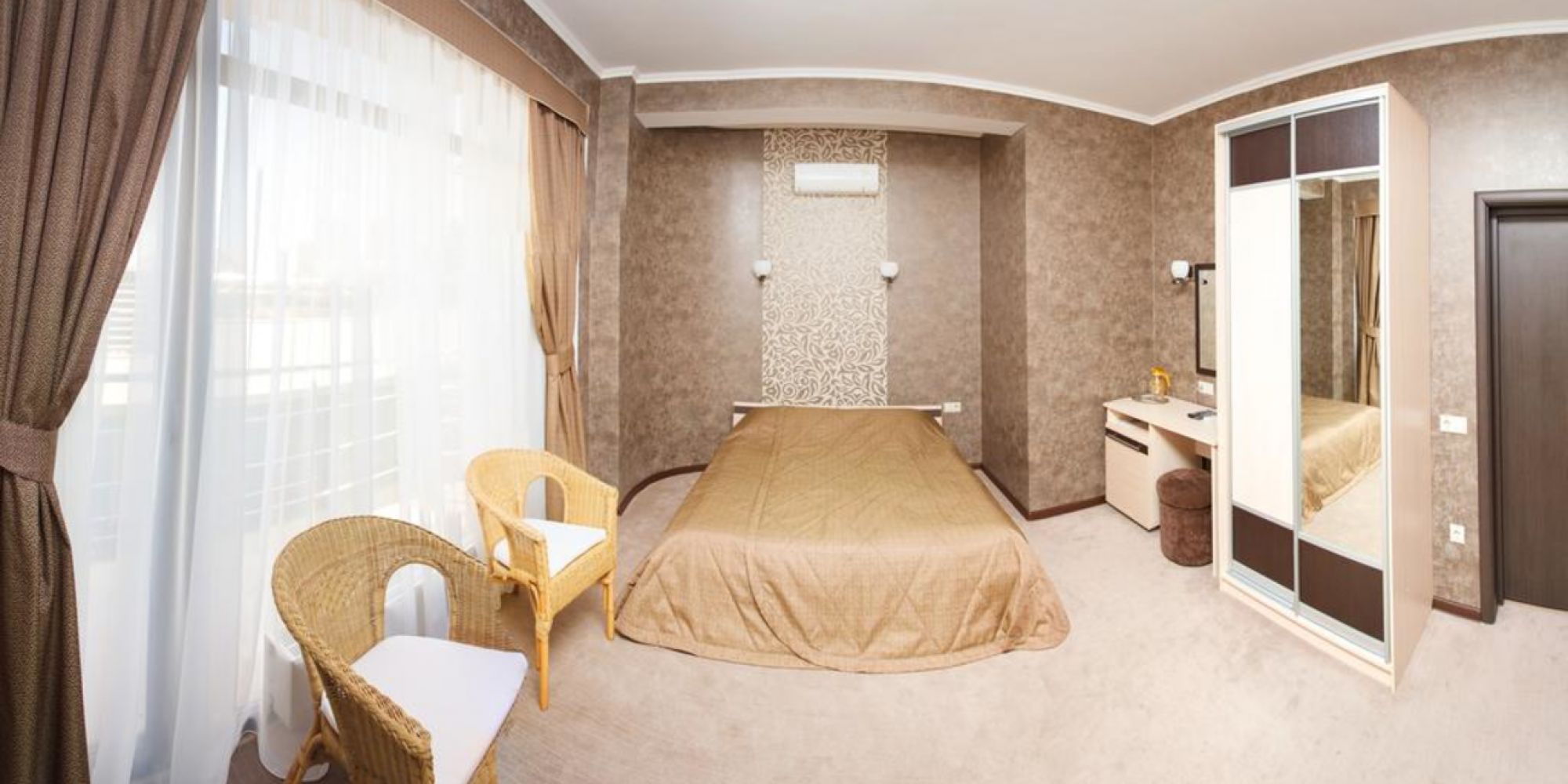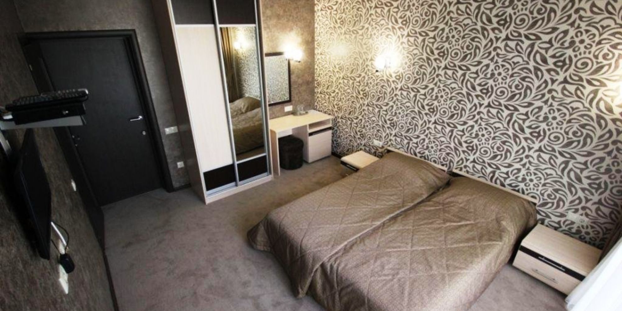 вешалка, зеркало, кровати односпальные /одна двуспальная кровать, прикроватные тумбочки, стол, стулья, шкаф-купе