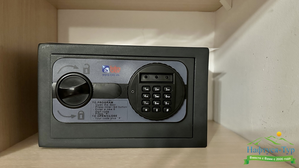 мини-холодильник, сейф, сплит-система, телевизор ЖК, чайный набор посуды, электрочайник