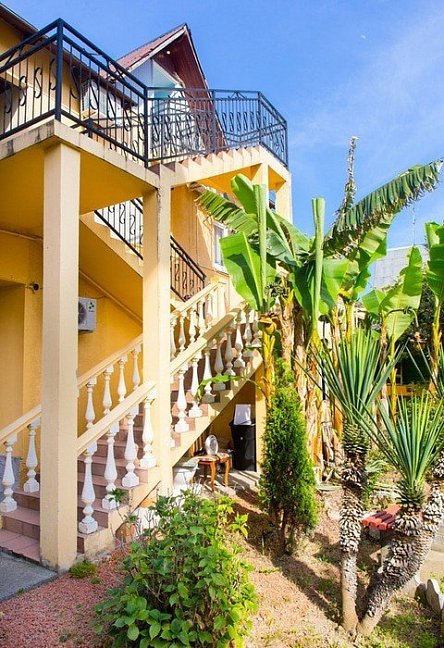 Расположение: Первая линия у моря (150 м до пляжа), 50 м до центра Адлера, 25 км до центра Сочи, 4 км до аэропорта. Адлер