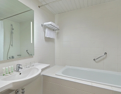 с ванной, с душевой кабиной, туалетные принадлежности, фен