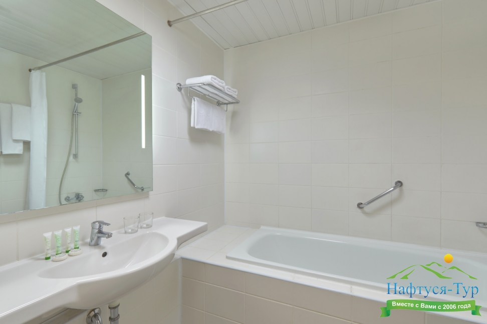 с ванной, туалетные принадлежности, фен