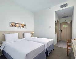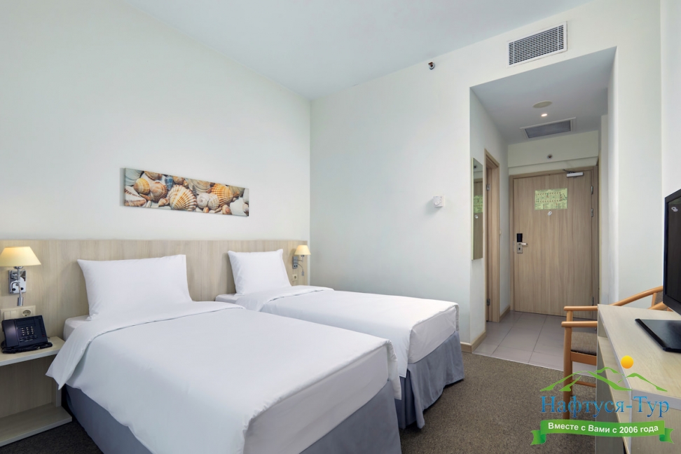 Расскажу про свой опыт пребывания на отдыхе. Номер был неплохой, довольно просторный, но не было шкафа. Все вещи хранила в сумках. Это, конечно, неудобно. Также не было в санузле жидкого мыла. Правда, по первой просьбе принесли.