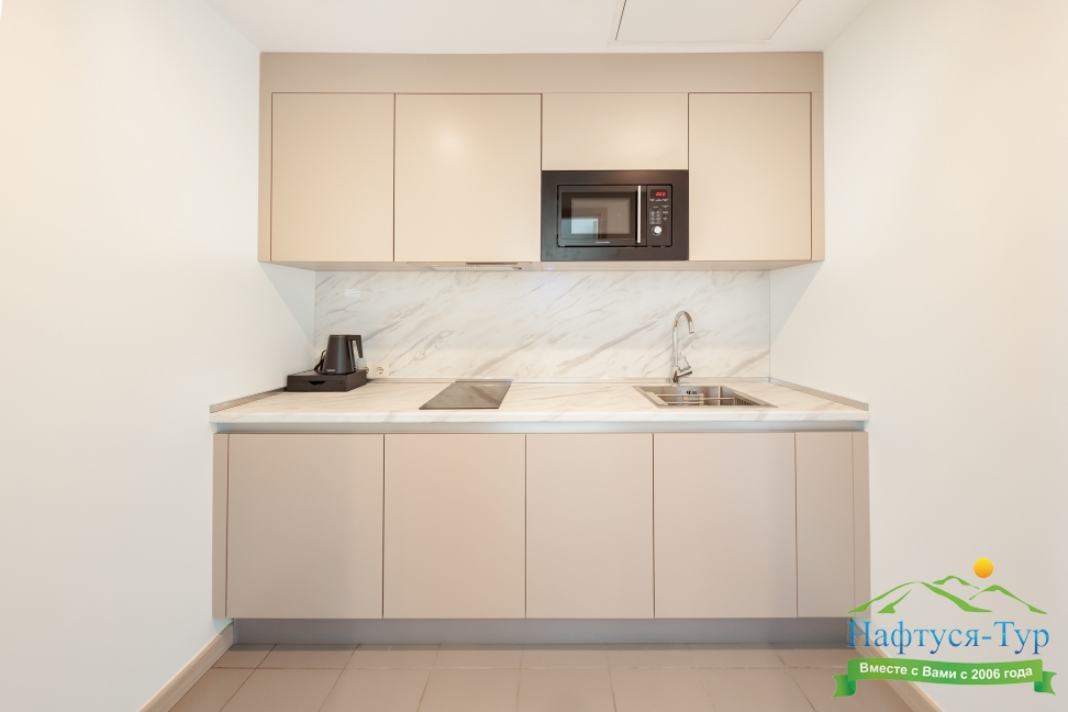 кондиционер, микроволновая печь, мини-холодильник, плита индукционная, посудомоечная машина, телефон, электрочайник