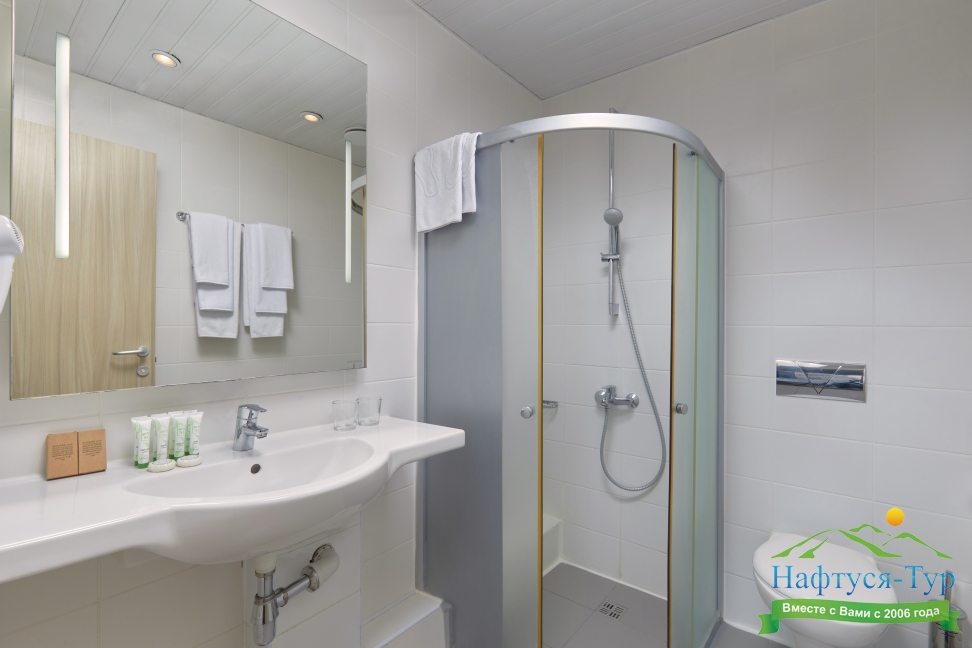 с душем или ванной, туалетные принадлежности, фен