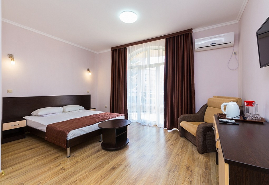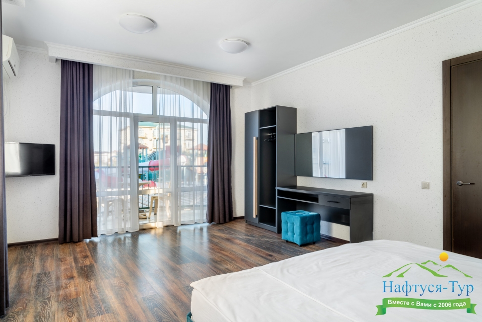 Другого такого отеля в Анапе нету. Вежливый персонал на ресепшене. Ухоженная территория, бассейн и горки очень мило. В целом отдыхом в отеле очень довольны. Номер дали тот, который мы просили при бронировании в турфирме Нафтуся-тур.