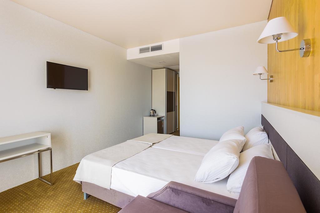 Отличный отель для отдыха в России. Приехали сюда в августе. Жили в 1-м корпусе. Номера в нём дороже, но цена соответствует качеству. В номере был сделан косметический ремонт, всё в хорошем состоянии, есть всякие мелочи.