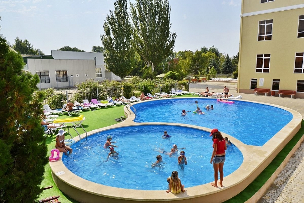 детский бассейн: открытый, диаметр 6 м, вода пресная, не подогреваемый, пользование бассейном входит в стоимость, работает с 01.06. по 30.09, расположен на территории отеля.