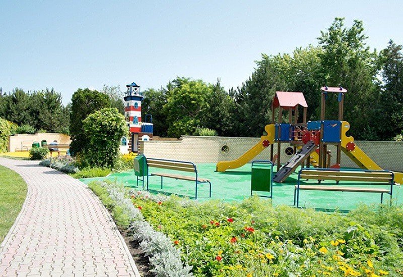 Для детей на территории расположен мини-аквапарк, детская площадка, детская игровая комната, где можно весело проводить время под присмотром опытных воспитателей.