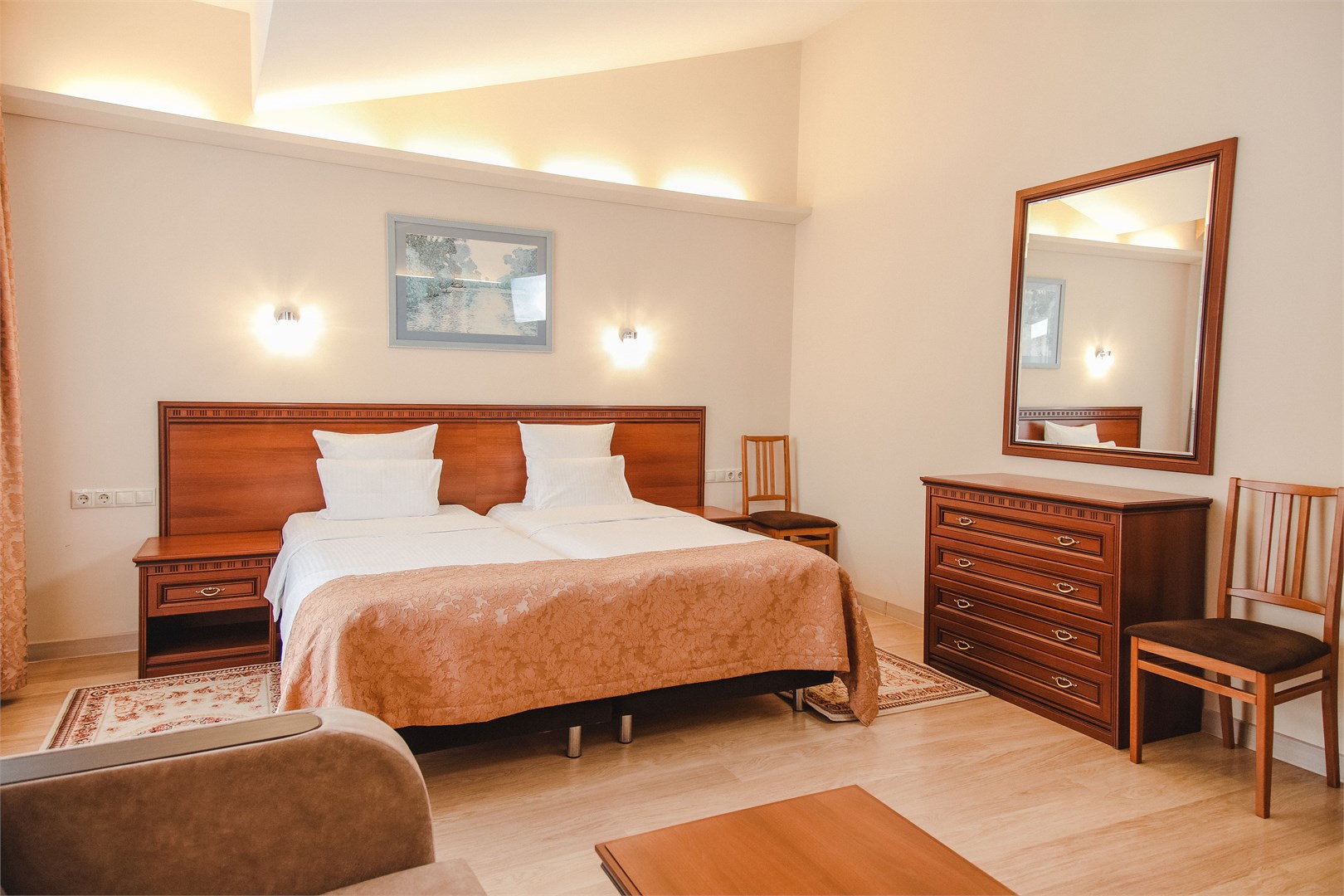 Номерной фонд санатория «Каникулы в Анапе ФНС России» представлен комфортными номерами различных категорий. Все номера оборудованы необходимыми удобствами для полноценного отдыха. Гостям предлагается сбалансированное питание, разработанное с учётом диетических рекомендаций и потребностей организма.