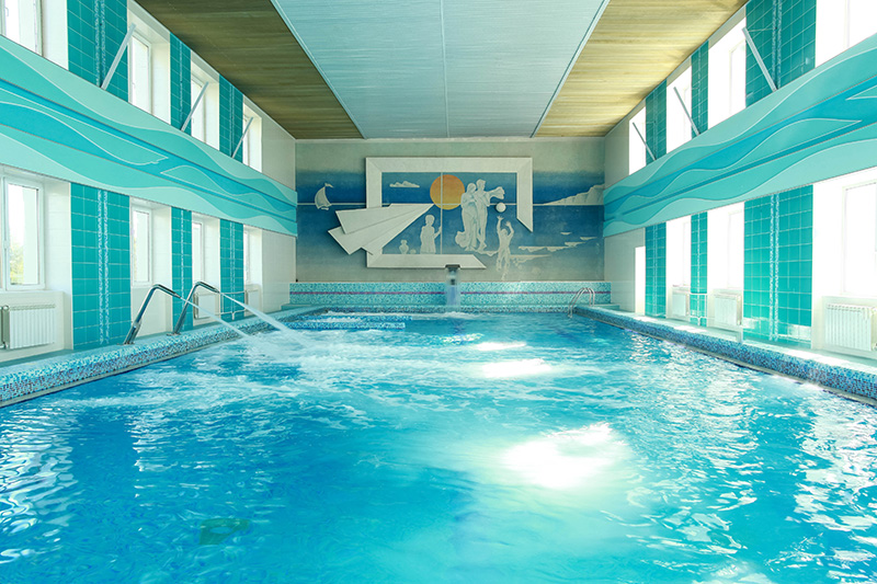 - крытый и открытый бассейн с морской водой