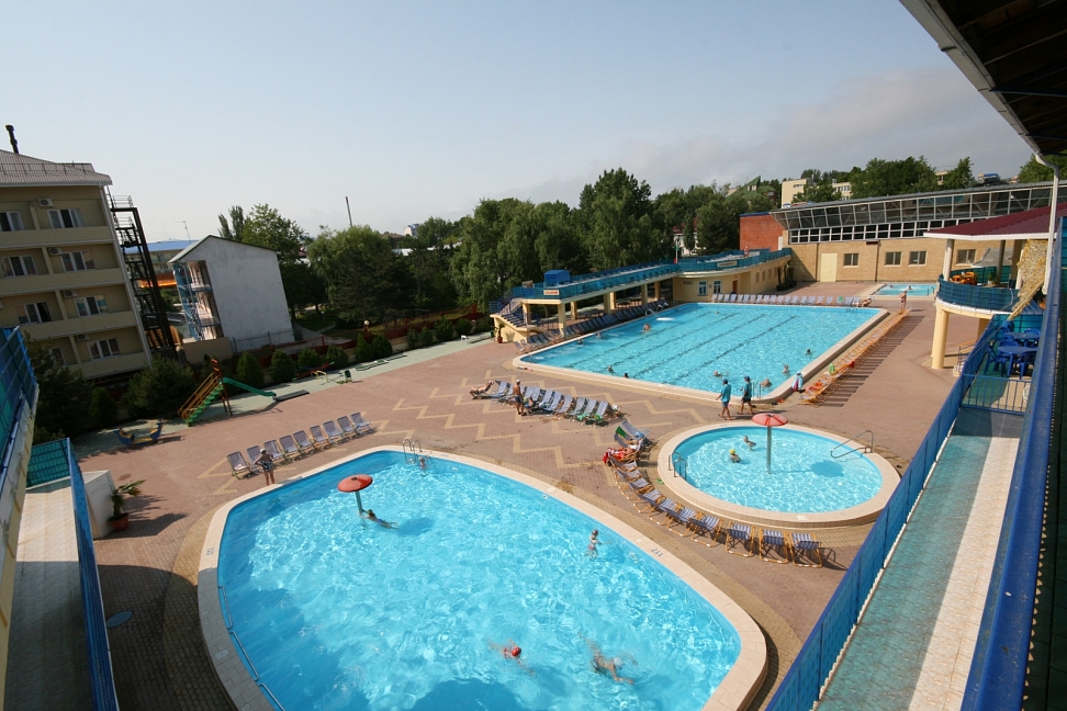 Бассейн открытый 25х10, вода пресная, детское отделение, не подогреваемый, пользование бассейном входит в стоимость, работает: сезонно с мая по октябрь.