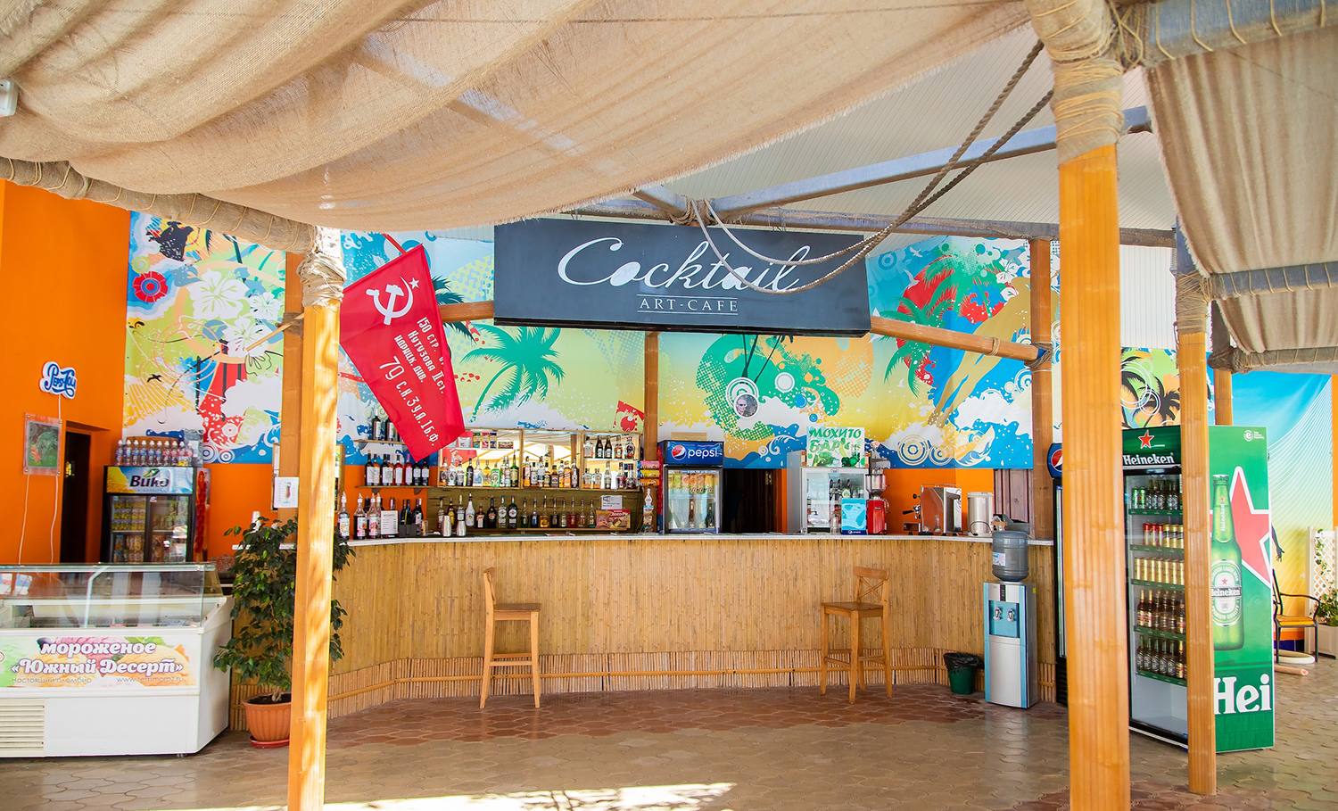 Расположение на берегу моря: "Бригантина" гордится своим уникальным местоположением в нескольких шагах от морского побережья, что создает неповторимую атмосферу морского отдыха.