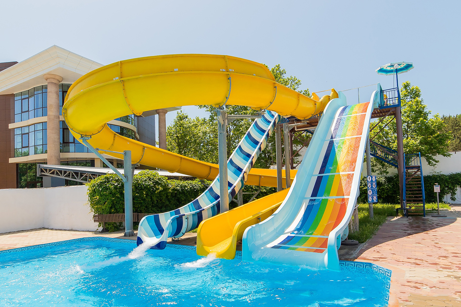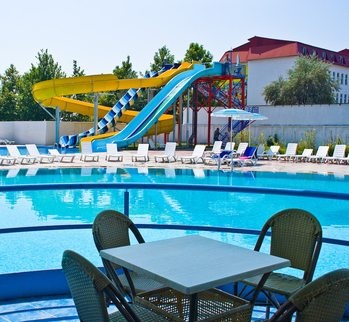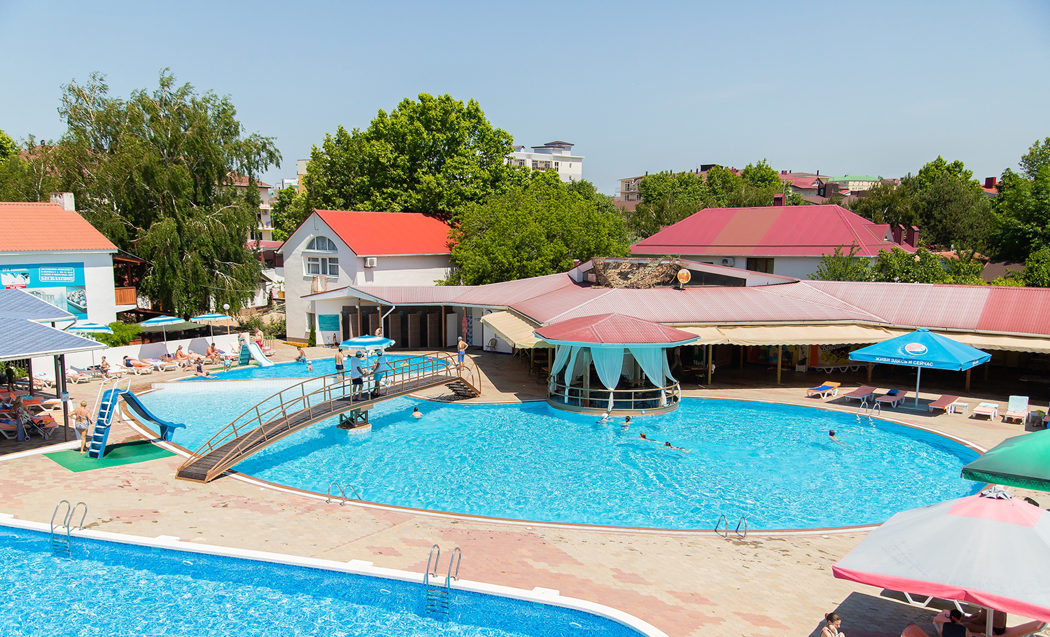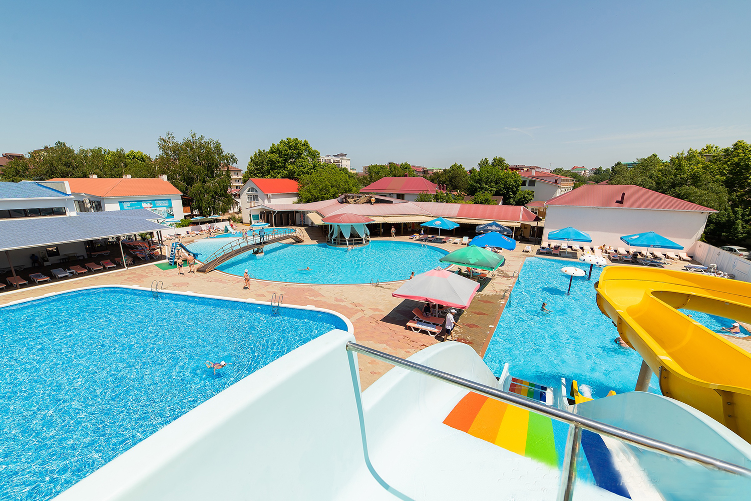 комплекс бассейнов: комплекс из 4 бассейнов с водными горками, бассейн с водными горками 25х13, бассейн 30х17 и 22х13 без подогрева.