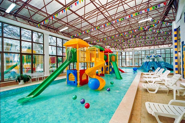 крытый бассейн с минеральной водой площадью 20х10 метров с гидромассажем с детским отделением,