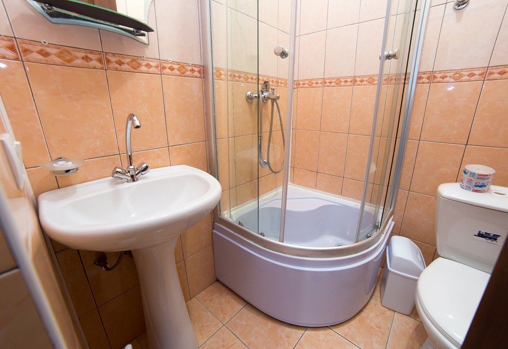 с душевой кабиной, туалетные принадлежности