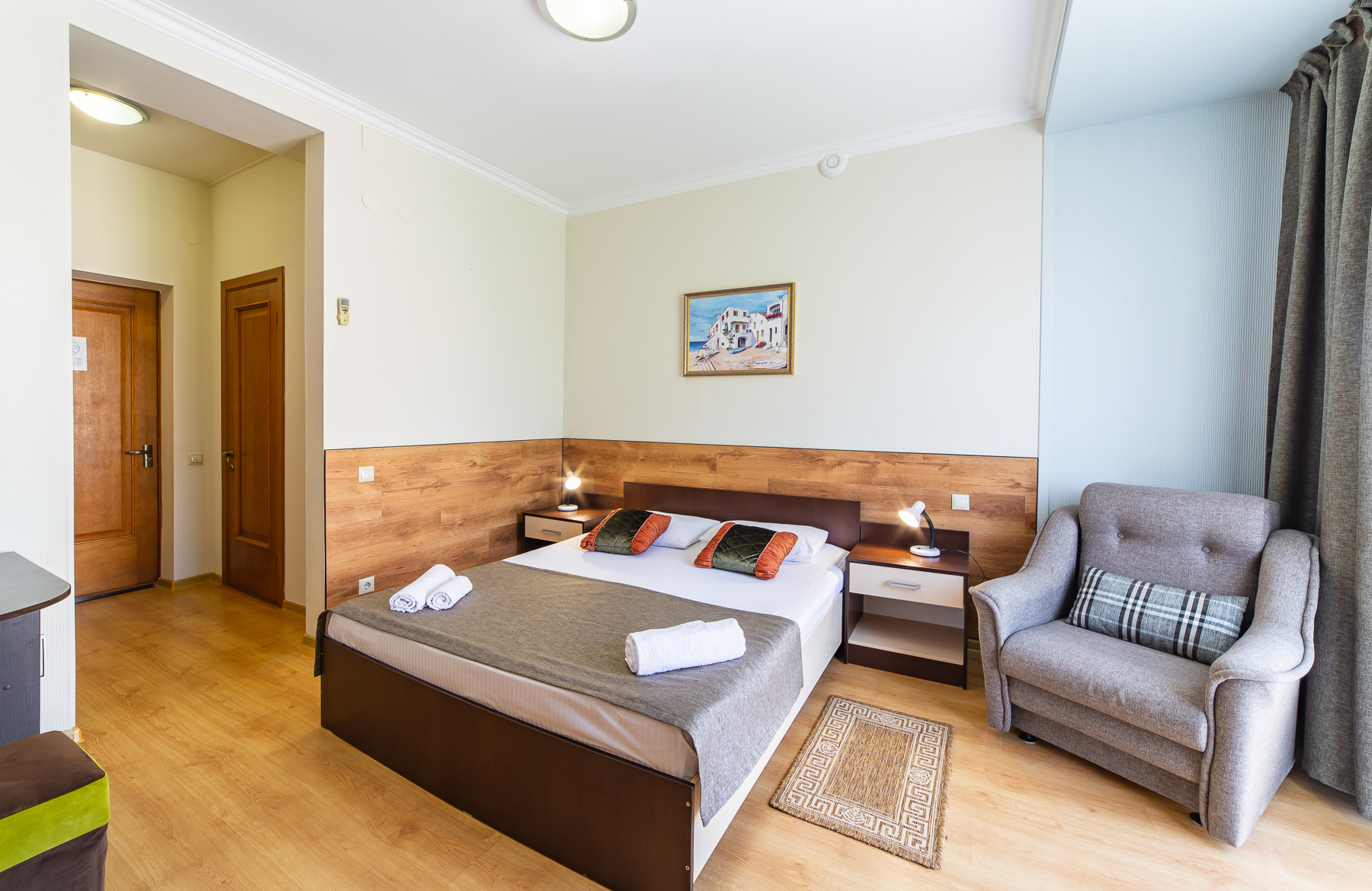 Wi-Fi бесплатно , смена полотенец (ежедневно) , смена постельного белья (1 раз в 5 дней) , уборка номера (1 раз в 3 дня) , услуги внутренней телефонной связи
