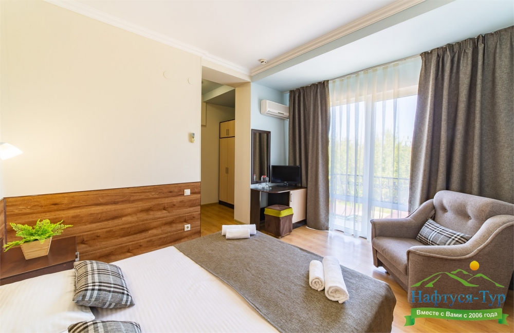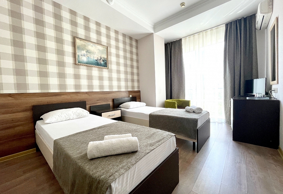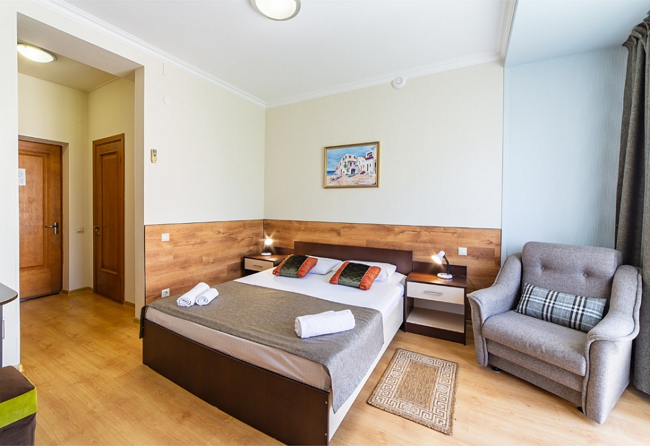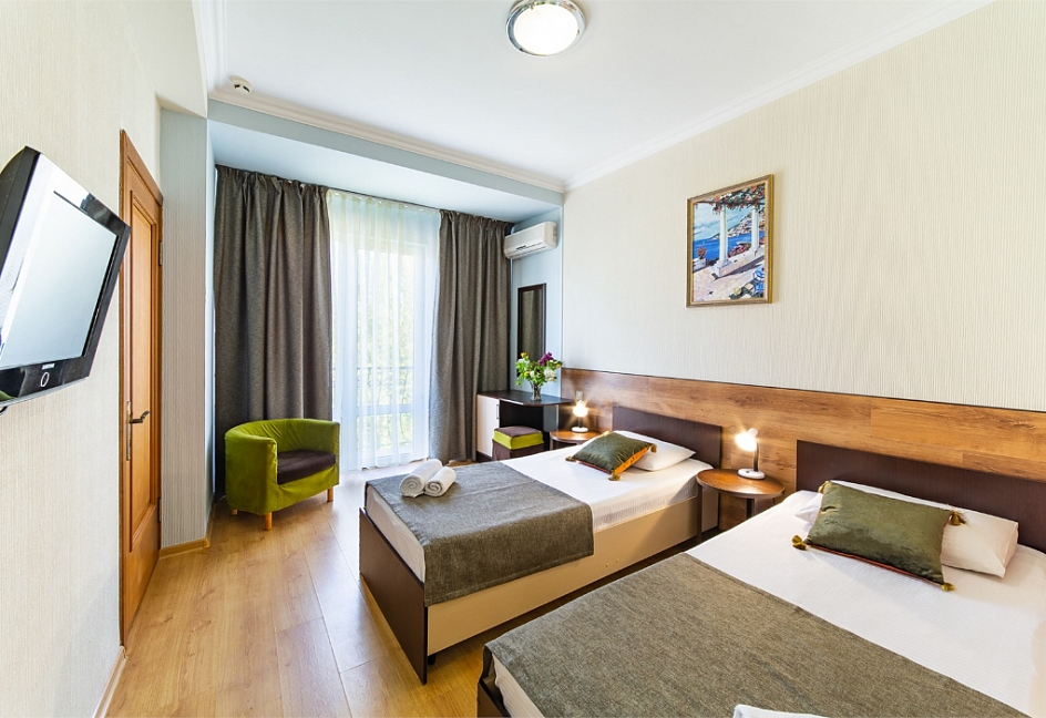 Самолетом до аэропорта г. Анапы, далее на маршрутном такси №113 до остановки «Аквапарк», далее пройти пешком 370 м до отеля.