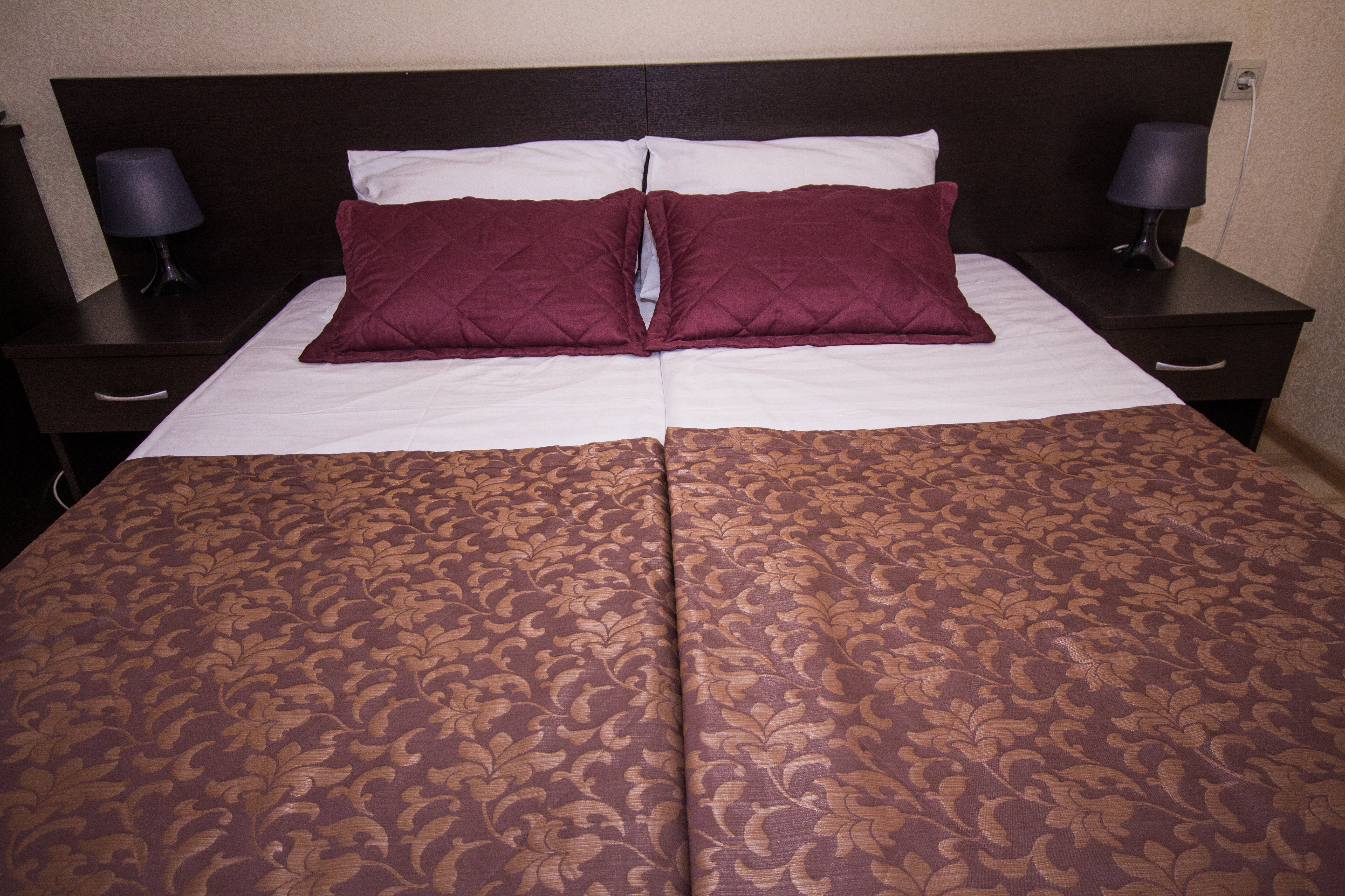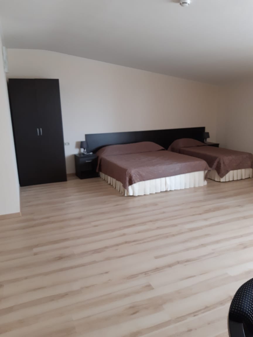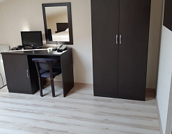 вешалка, зеркало, кровати односпальные /одна двуспальная кровать, прикроватные тумбочки, стол, стул, шкаф