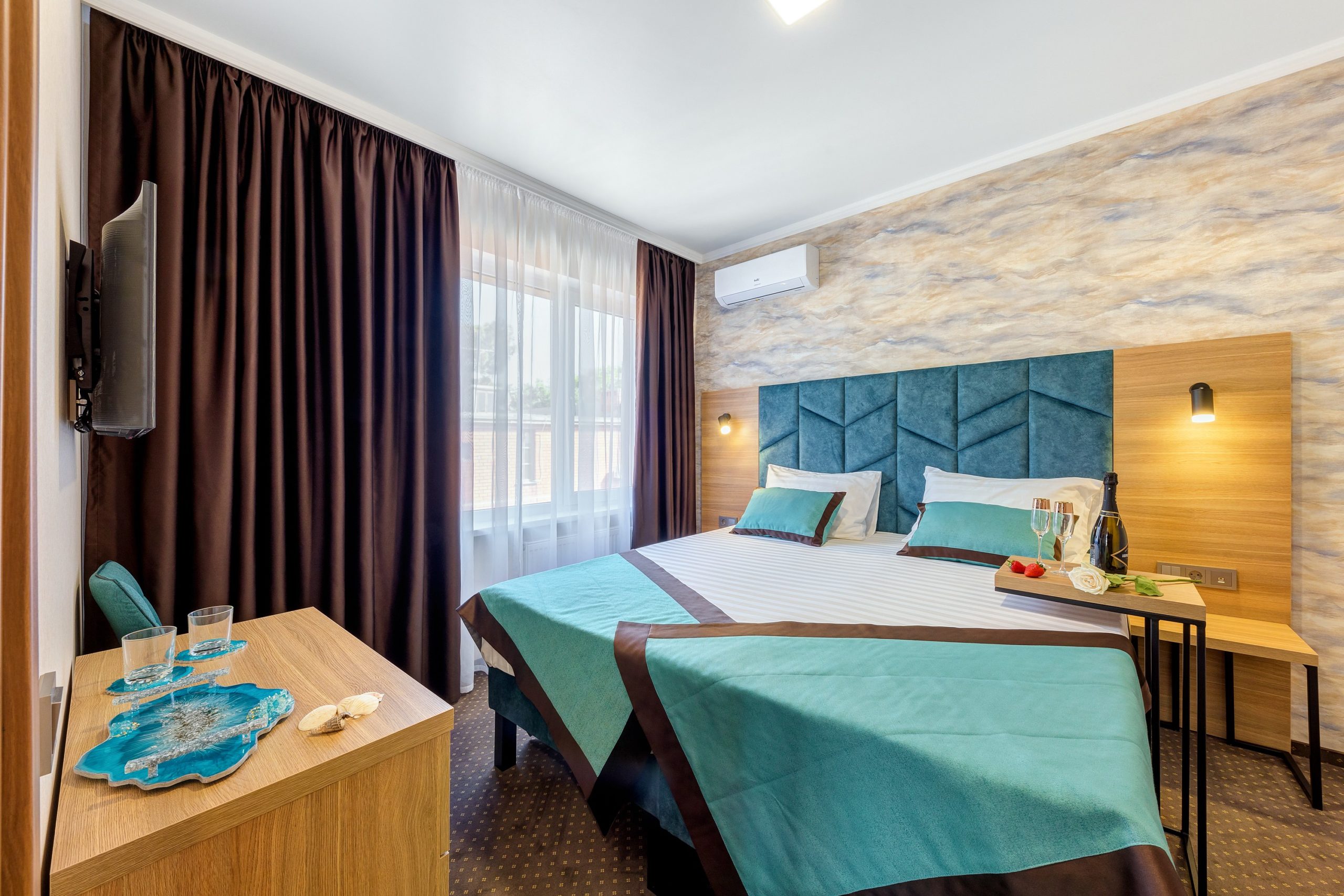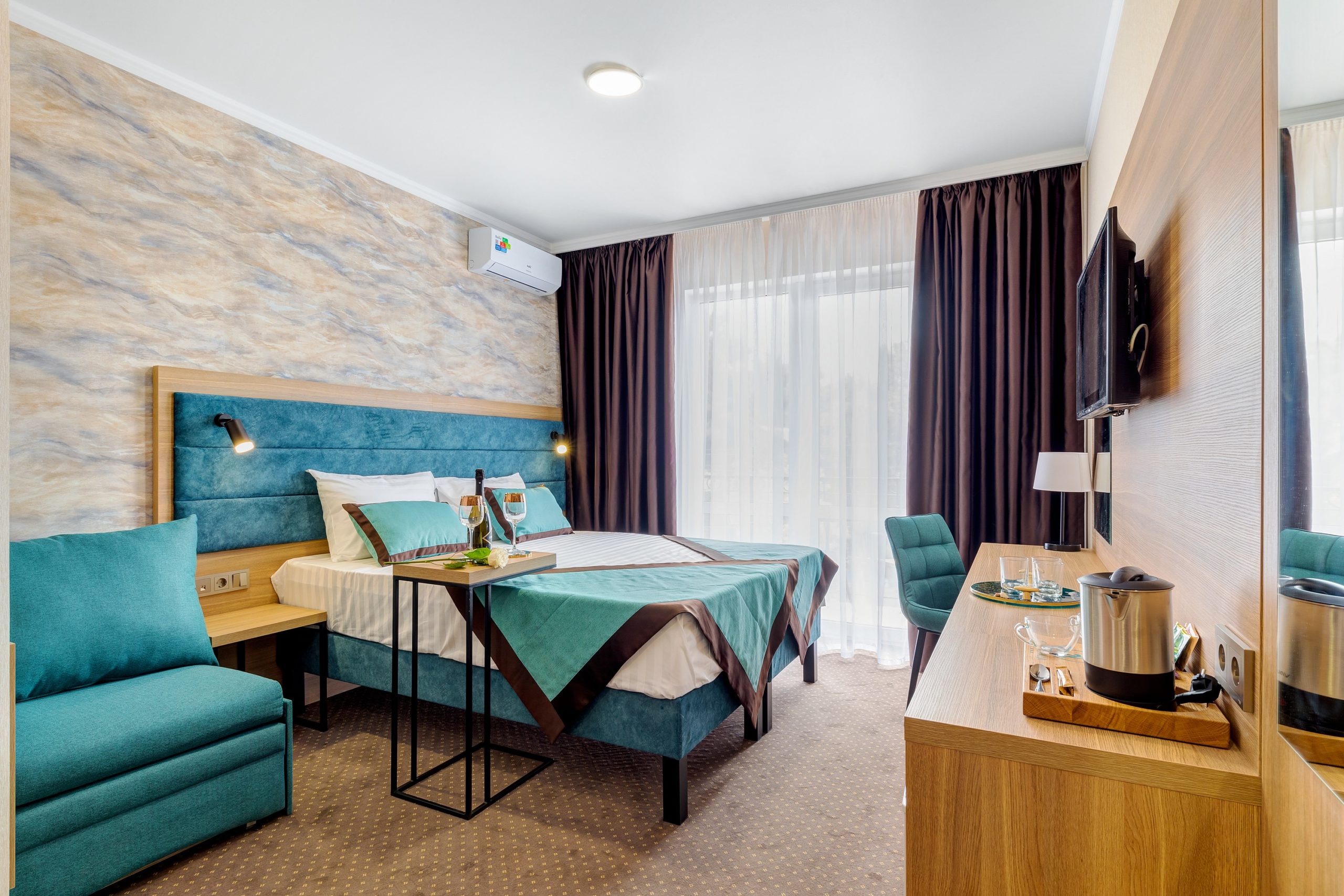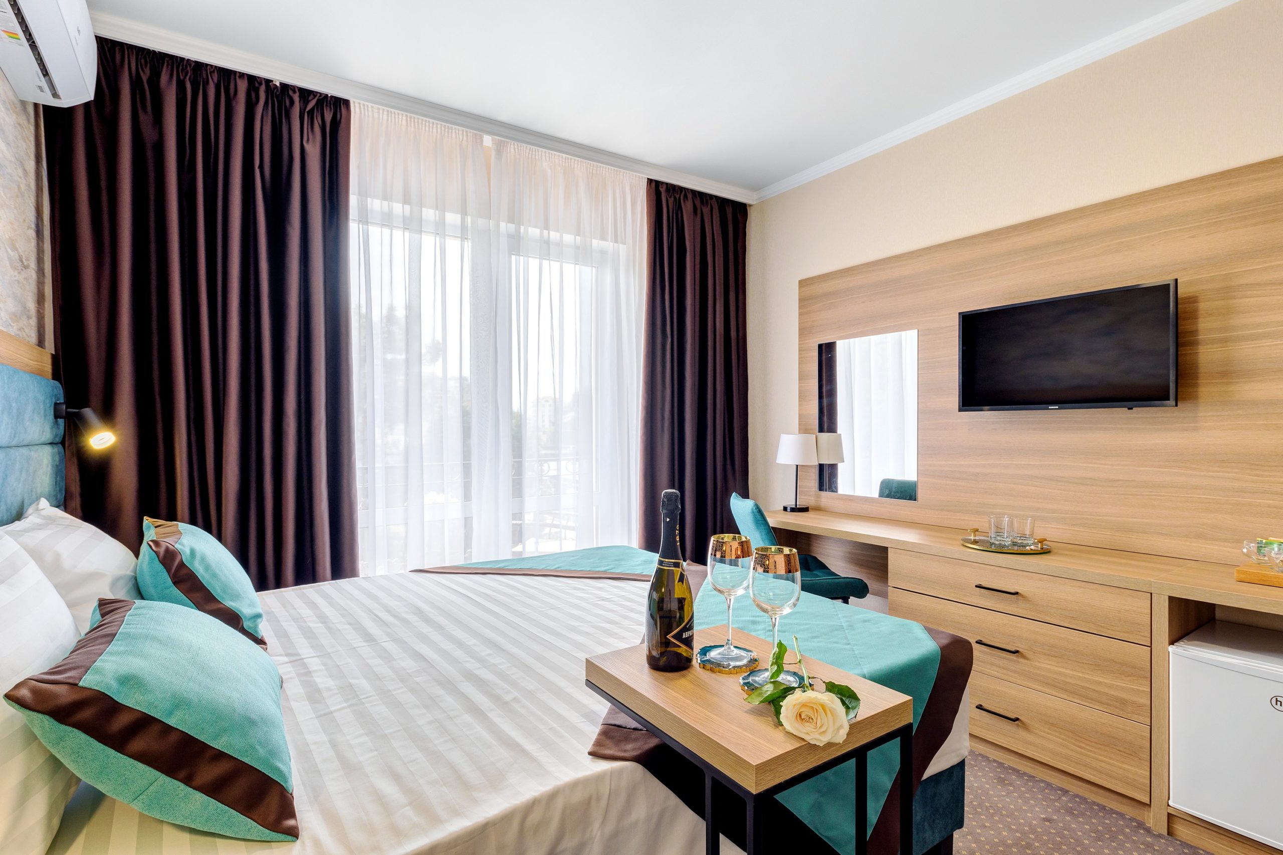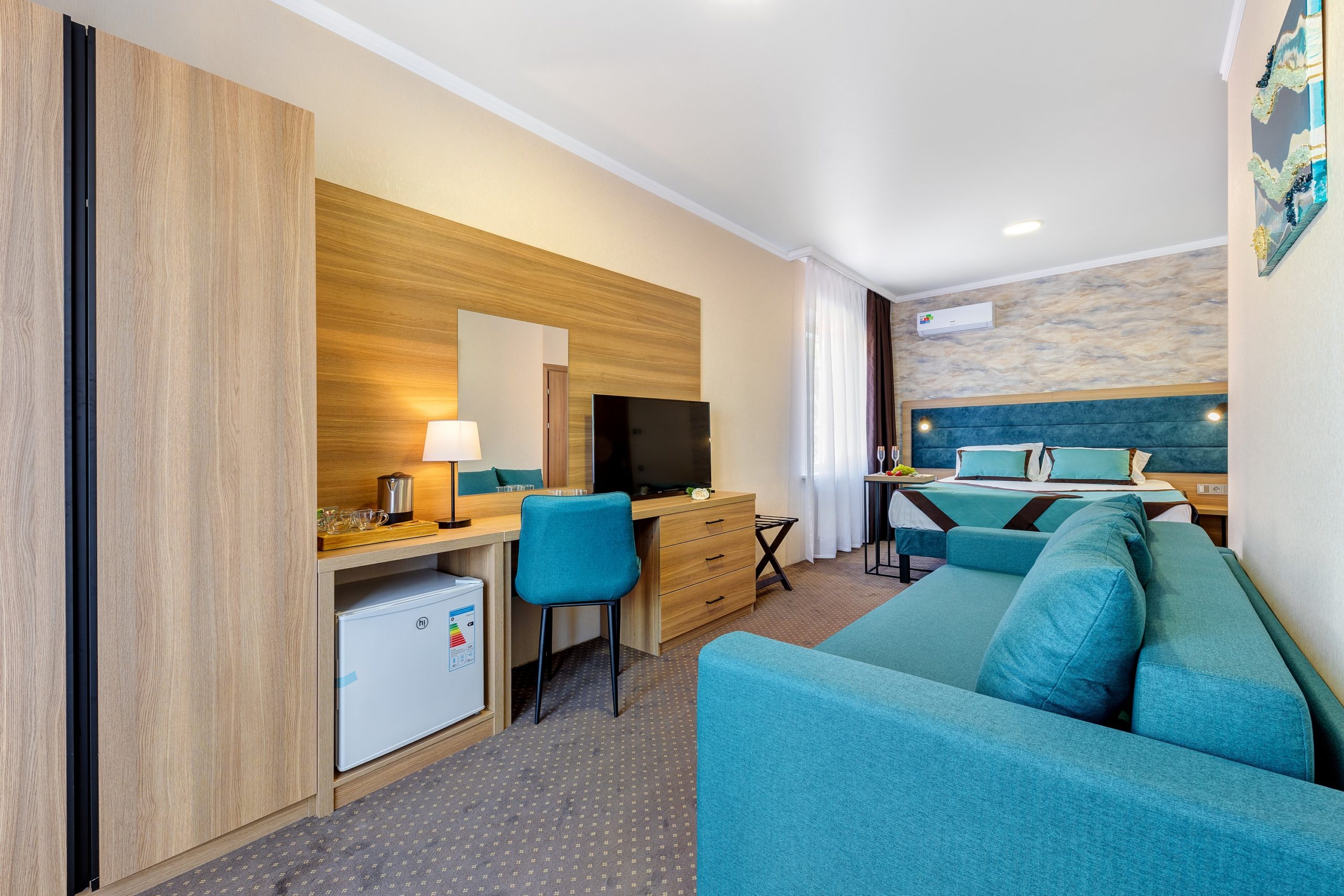 кондиционер, мини-холодильник, набор посуды, телевизор, электрочайник