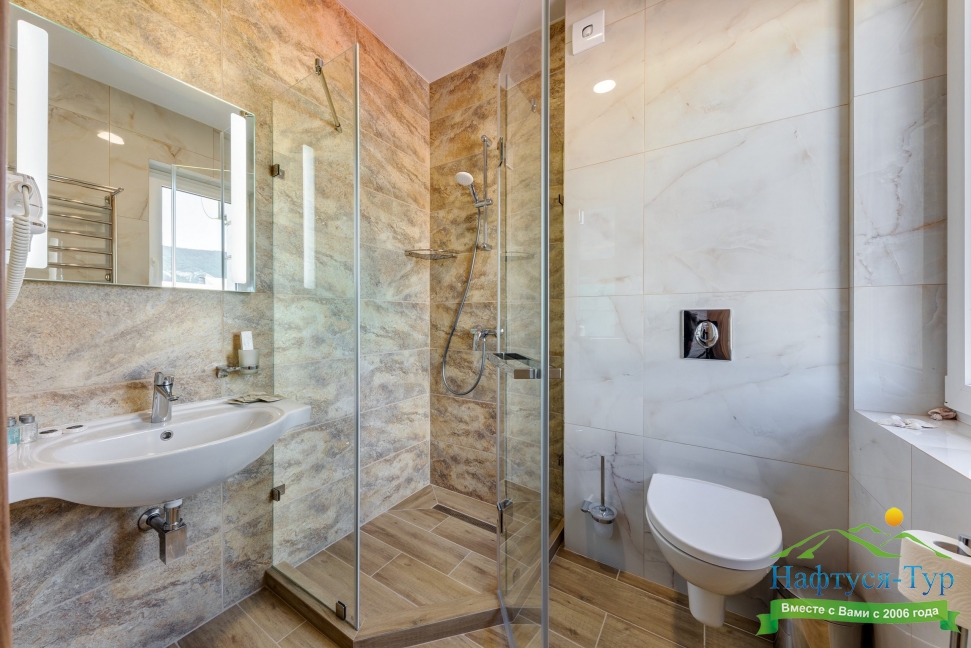 с душем, туалетные принадлежности, фен