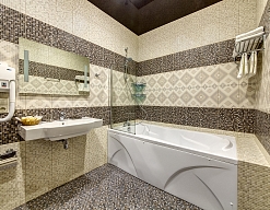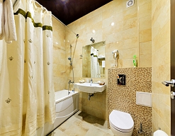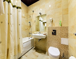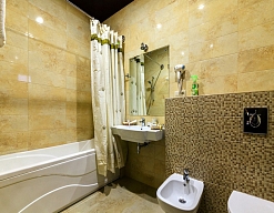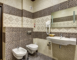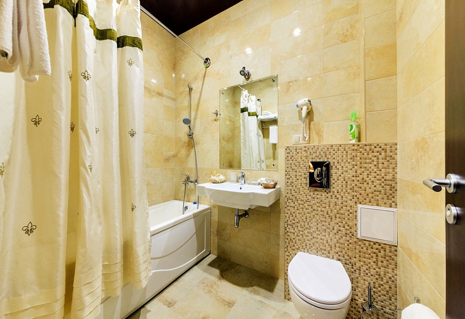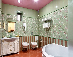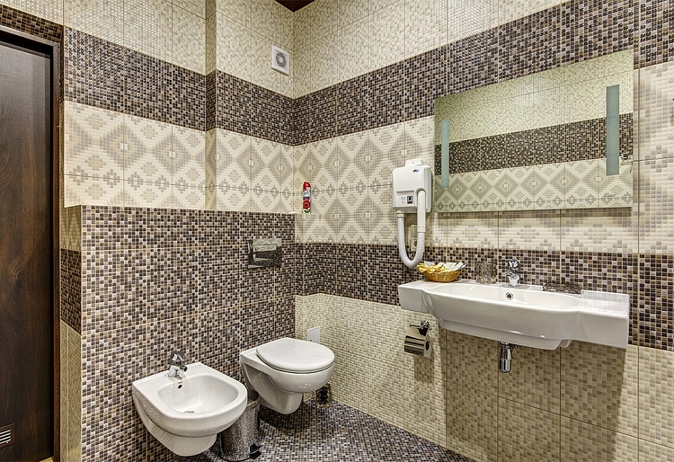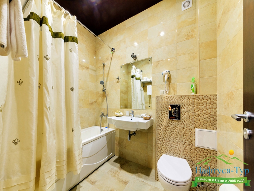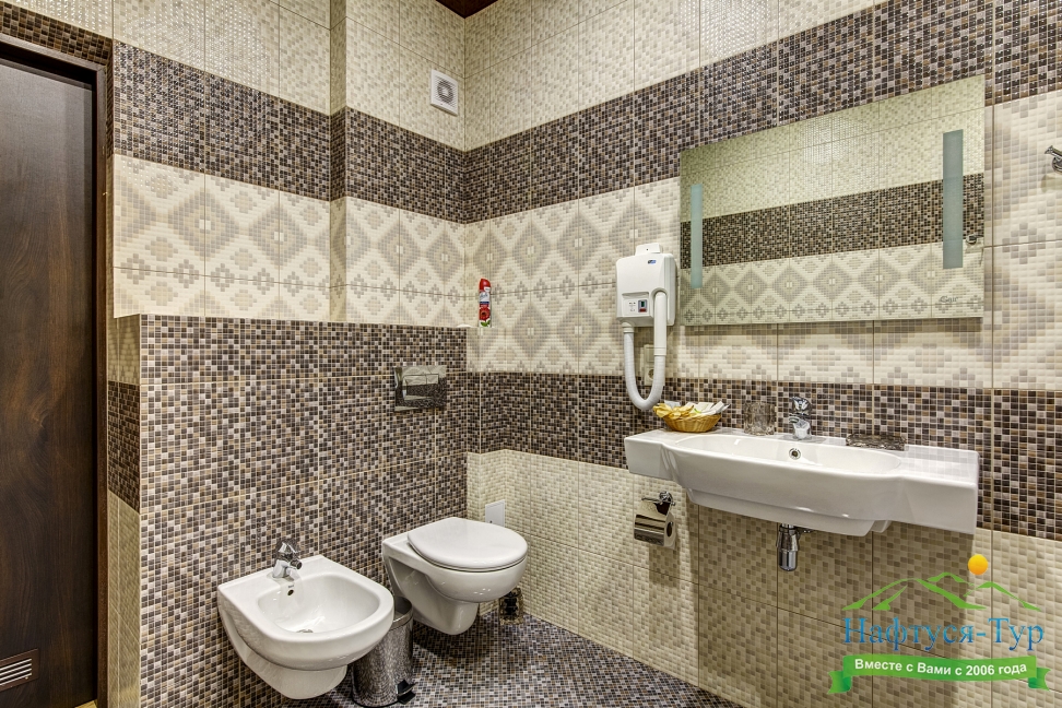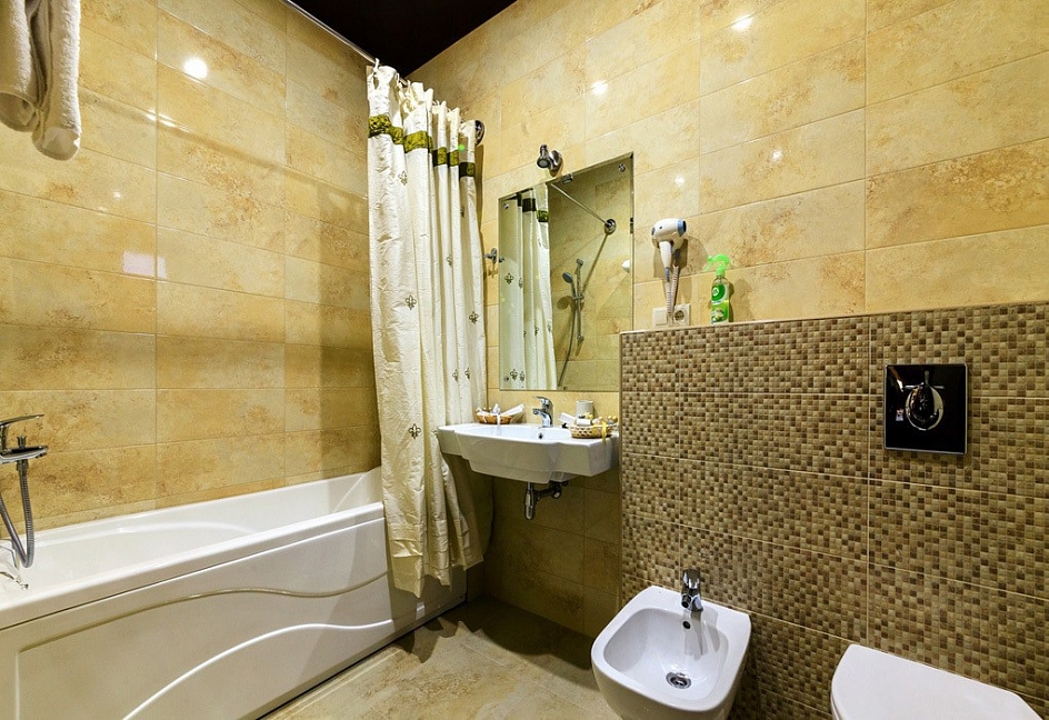 биде, с ванной, тапочки, туалетные принадлежности, фен, халат
