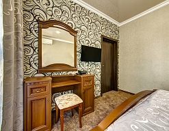 зеркало, ковровое покрытие, кровати односпальные /одна двуспальная кровать, прикроватные тумбочки, стол, столик журнальный, столик туалетный, стулья, шкаф