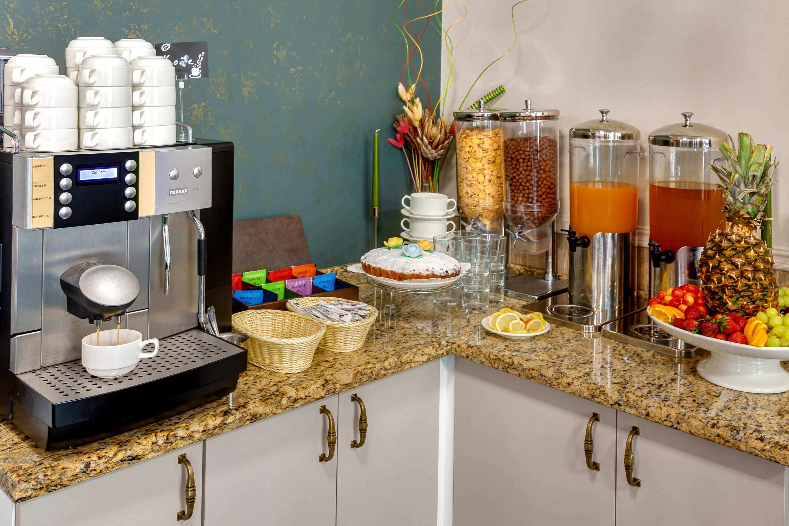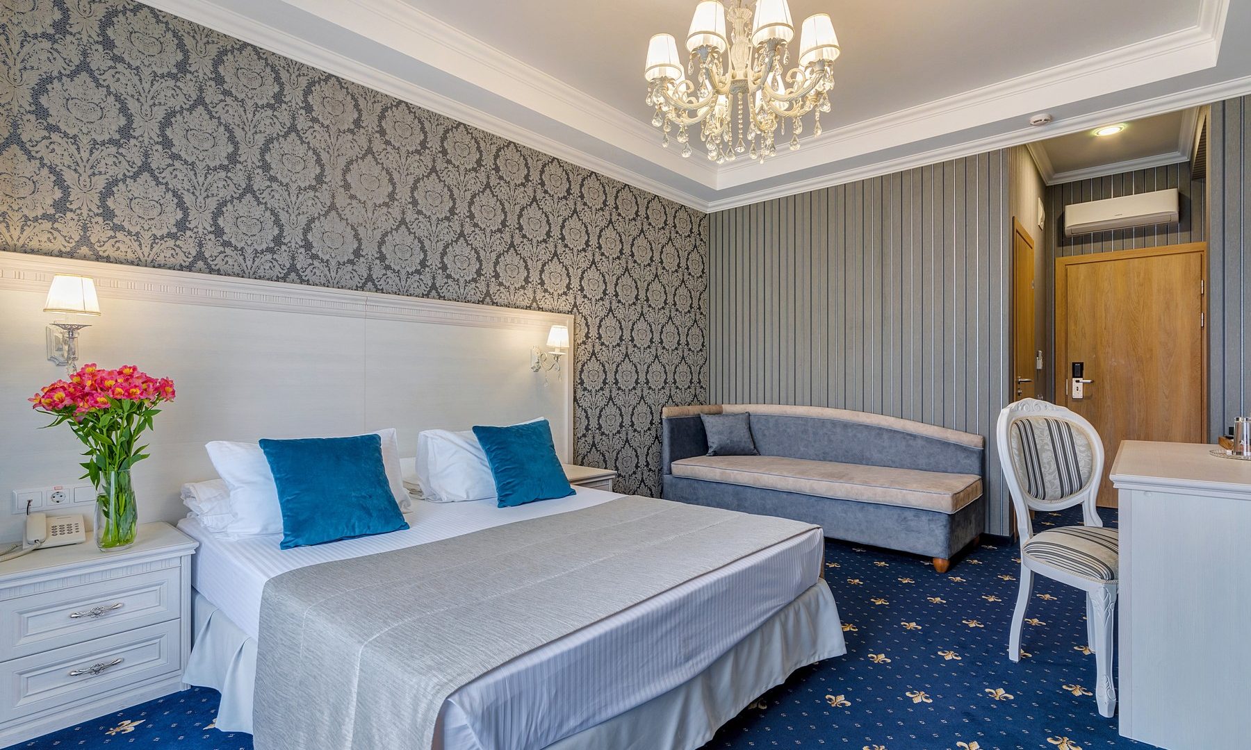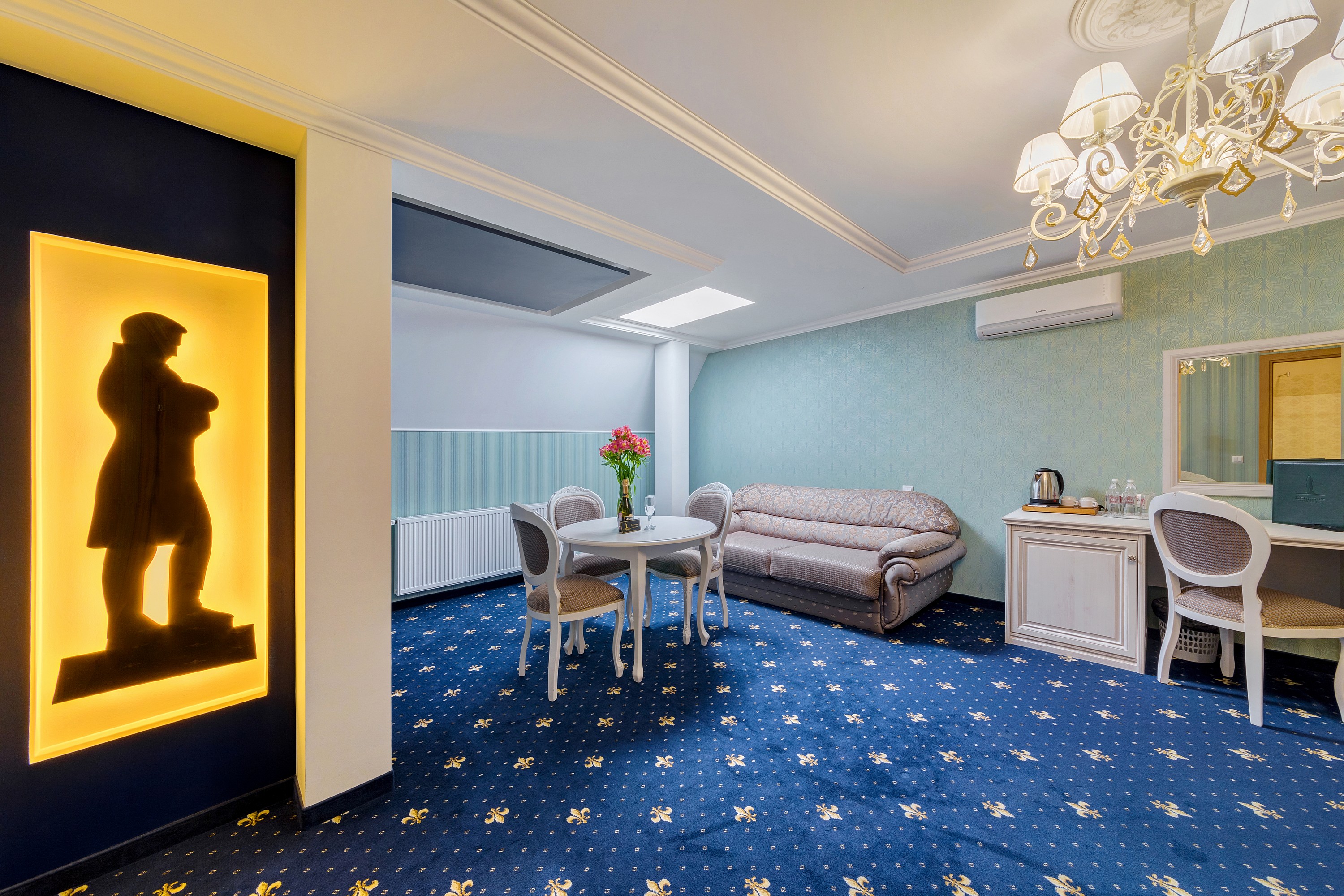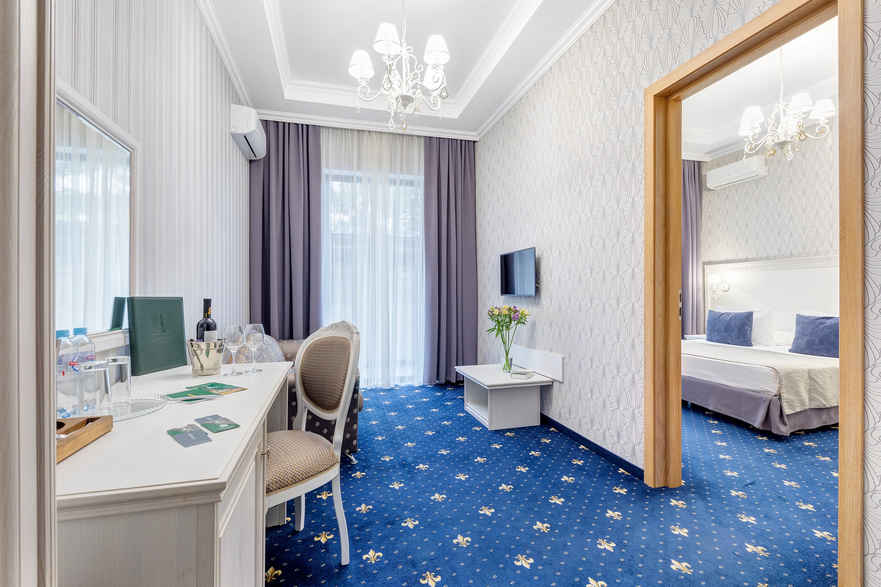 Большой номер. С новой комфортной мебелью. Отличный ремонт. В номере были все гигиенические принадлежности, халаты, каждый день в номер приносили воду. Идеальный удобный душ. Очень вкусные и обильные завтраки.