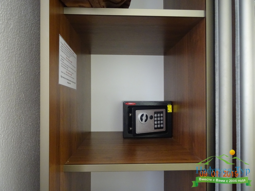 сейф, сплит-система, телевизор ЖК, холодильник, чайный набор посуды, электрочайник