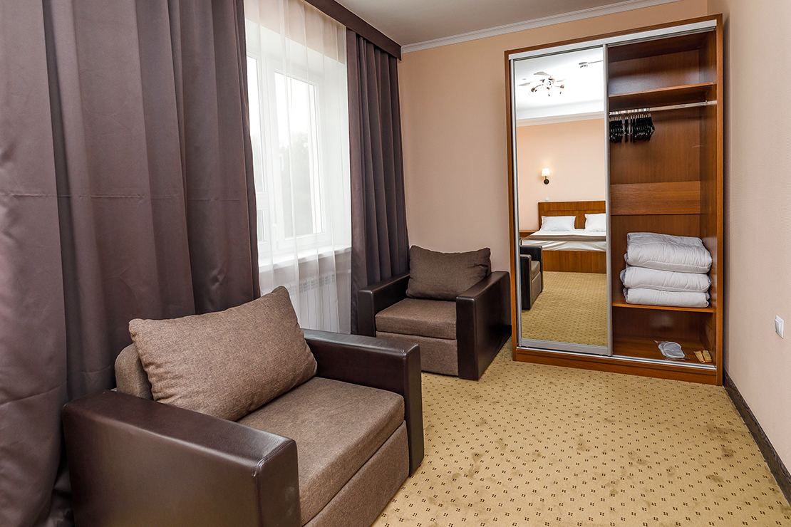 вешалка, диван раскладной, зеркало, кресло-кровать, кровати односпальные /одна двуспальная кровать, прикроватные тумбочки, столик журнальный, столик туалетный, стулья, шкаф