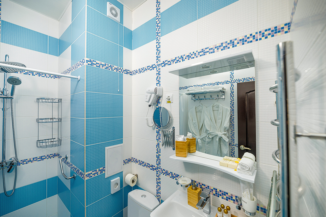 с душем, туалетные принадлежности, фен