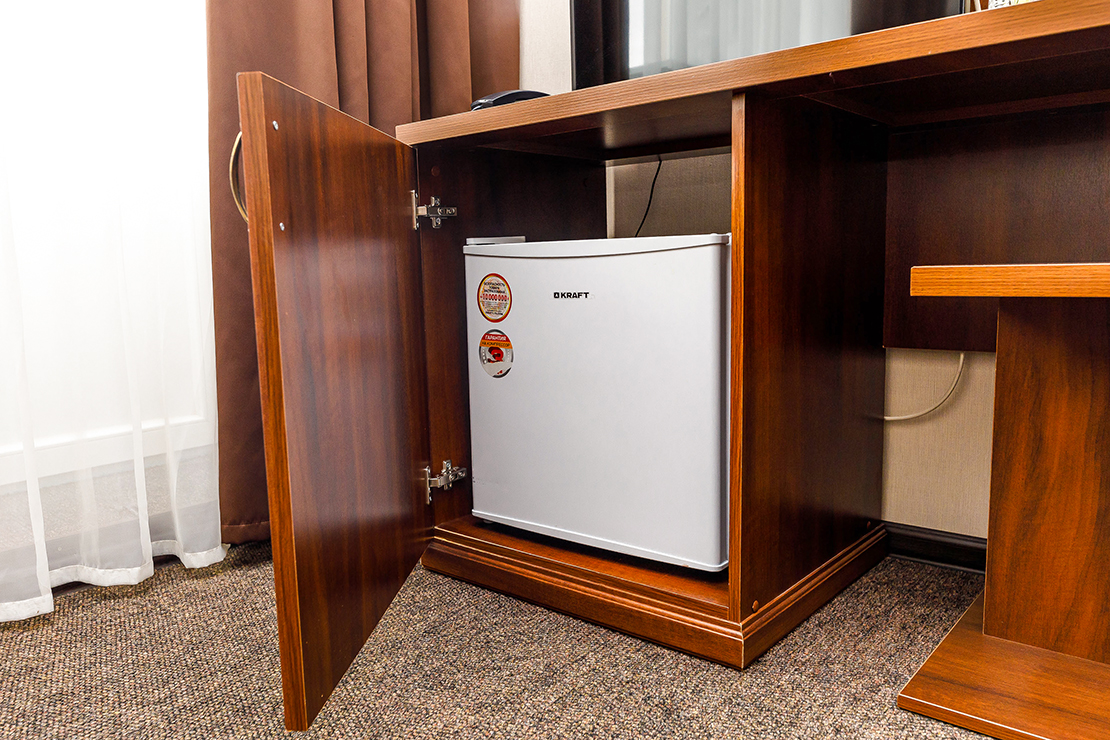 мини-холодильник, сплит-система, телевизор, чайный набор посуды, электрочайник