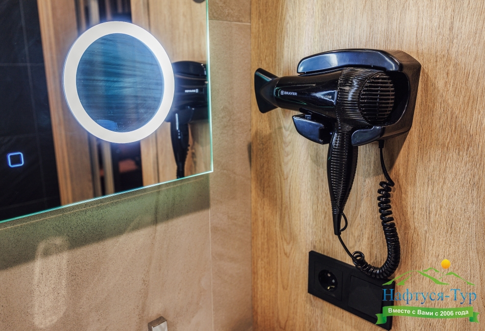 с душем, туалетные принадлежности, фен