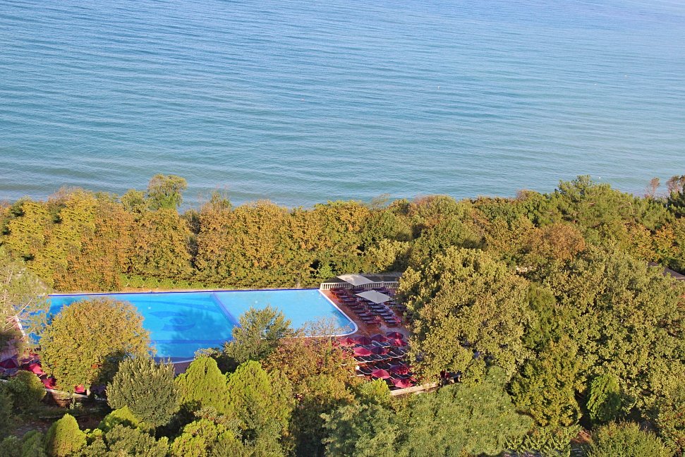 Действительно голубая и далей необозримо, чудный курорт с такими потрясающими пейзажами, огромным парком, розариумом, аллейками для прогулок.