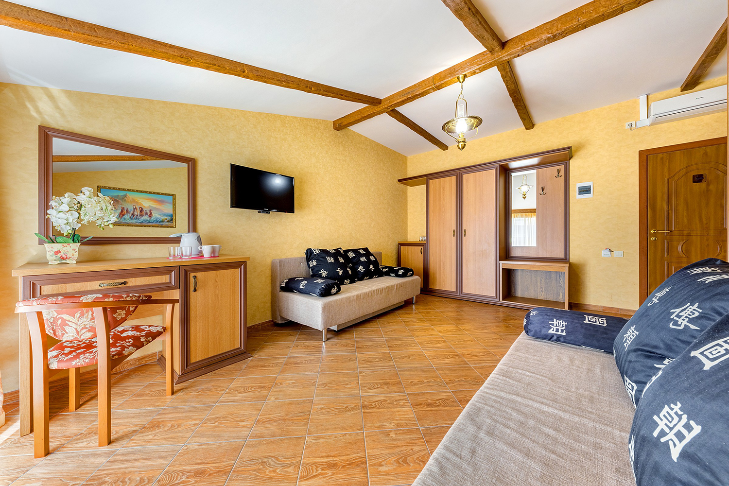 мини-холодильник, набор посуды, сплит-система, телевизор