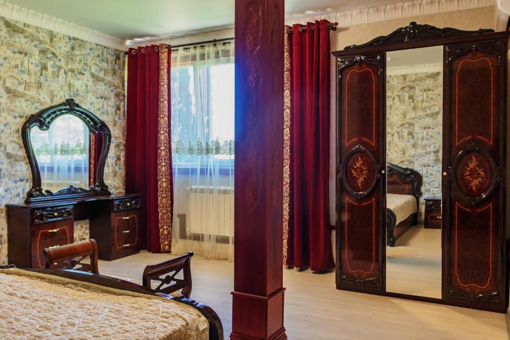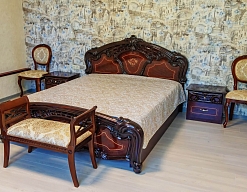 зеркало, кровать двуспальная, прикроватные тумбочки, стол, стул, шкаф