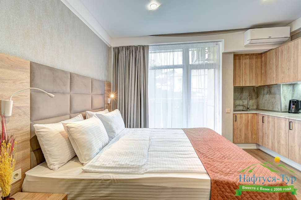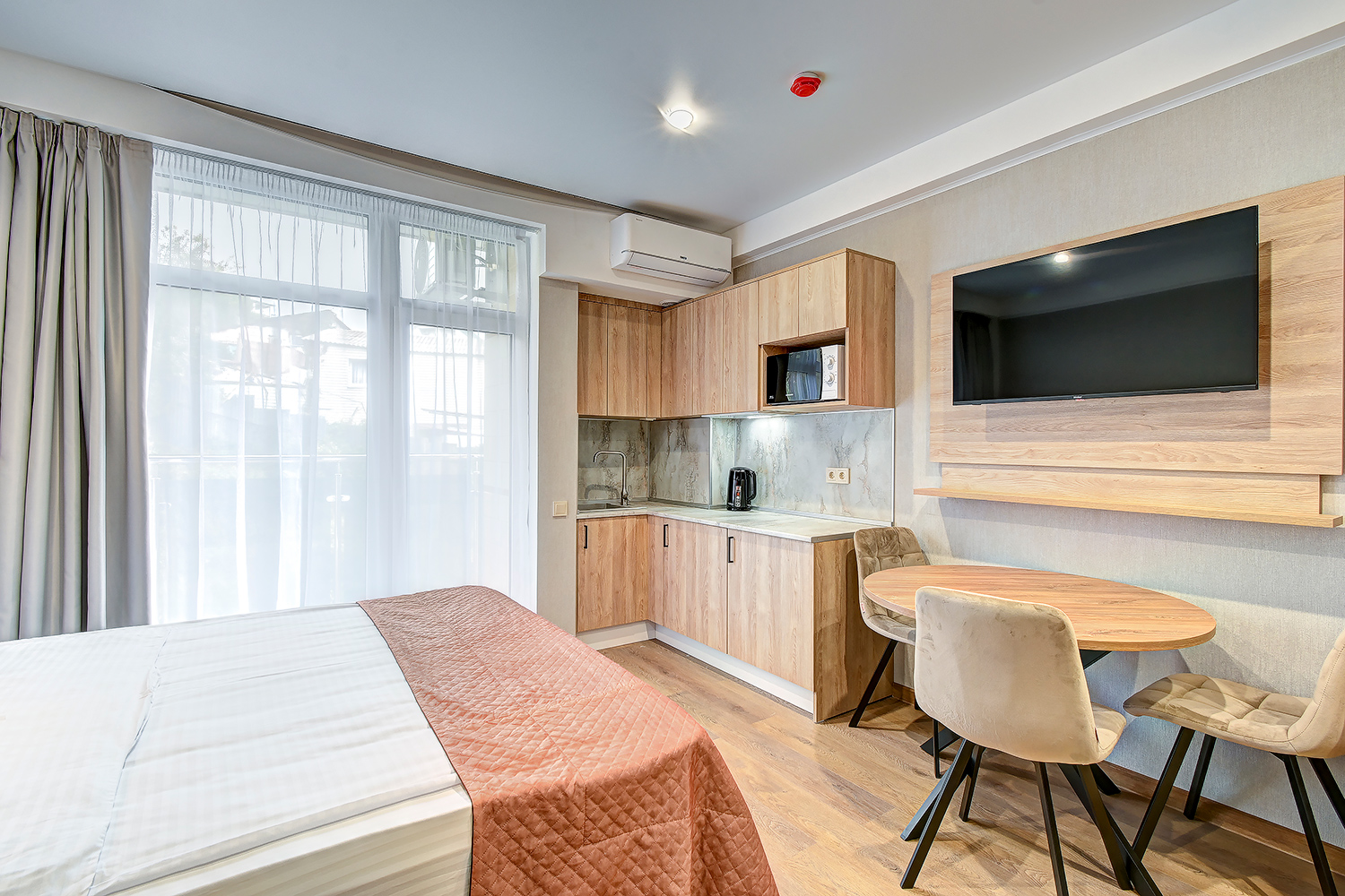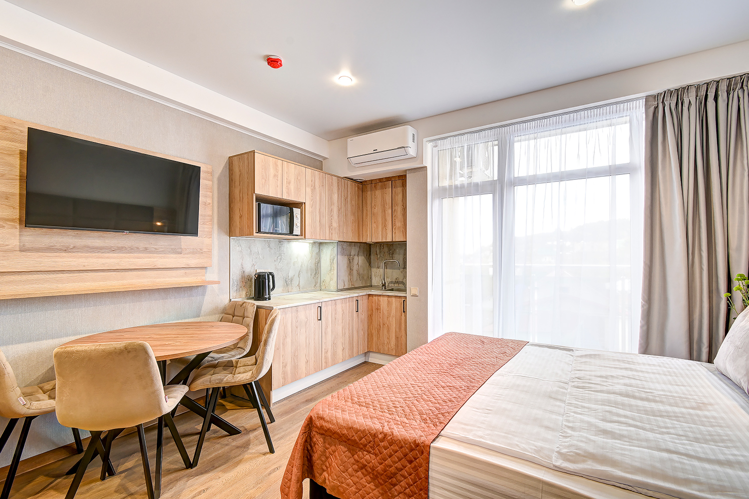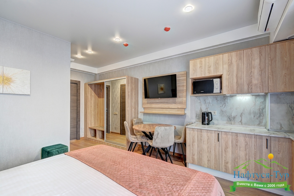 кондиционер, микроволновая печь, мини-холодильник, набор посуды, телевизор ЖК, электрочайник