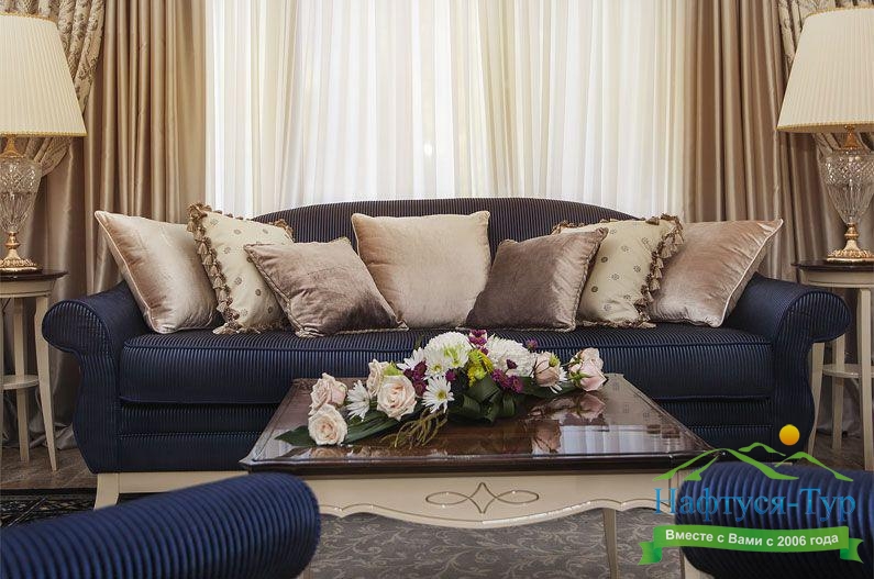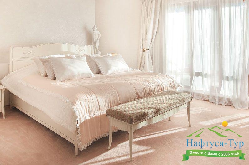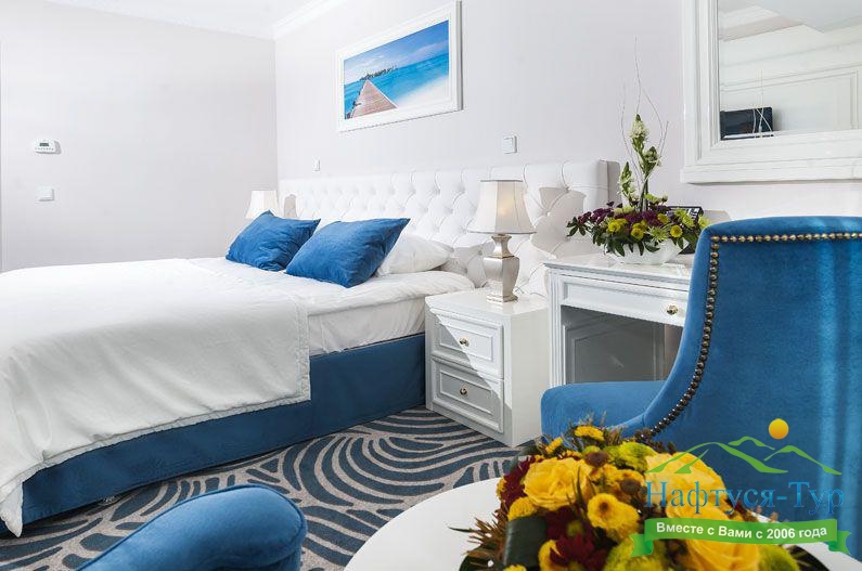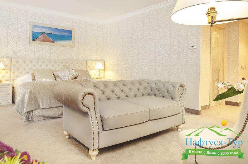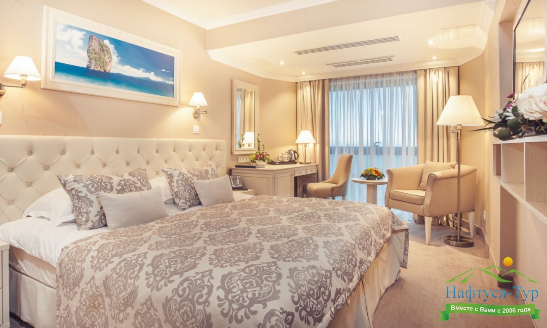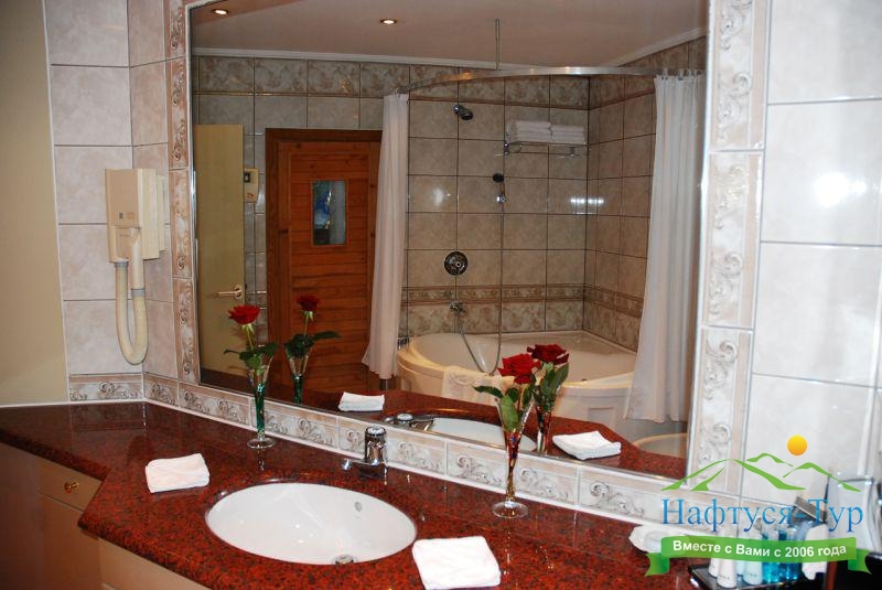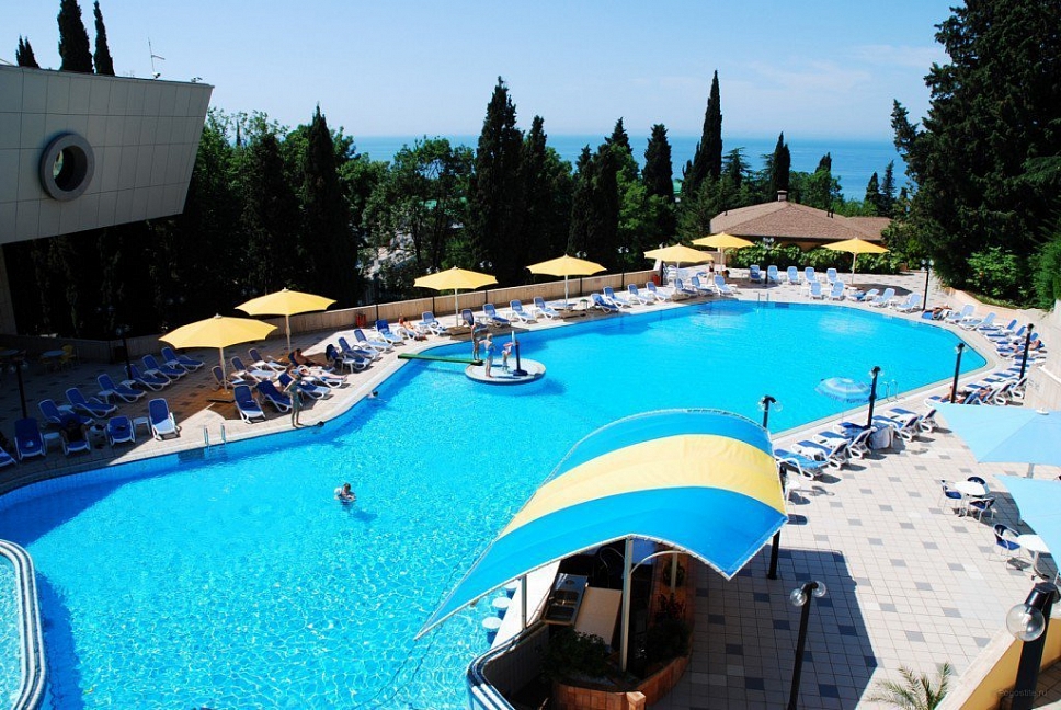 Отдыхали с подругой из Москвы, предварительно бронировали у компании Нафтуся-тур и приехали на отдых. Это был сентябрь 2015 года. Быстро заселили (было предварительное бронирование, удобно). Номера неплохие, чистенькие, только могли бы быть и побольше. И балконов нет, кажется, ни в одном номере, жаль. Маленькая ванная, хотя все принадлежности для мытья и полотенца – без нареканий. Уборка тоже была хорошей и без лишних напоминаний. Мы вообще любим чистоту – придраться не к чему. Кормили просто прекрасно, всего много и очень вкусно. Иногда ходили в бар рядом с бассейном – немного дороговато. Пляж маленький и до него спускаться под горку – людям с детьми было не очень удобно, особенно подниматься обратно. Хотя летом раз в полчаса ходит «маршрутка» - можно пользоваться. В общем, неплохо, хоть цены и кусаются.