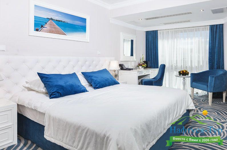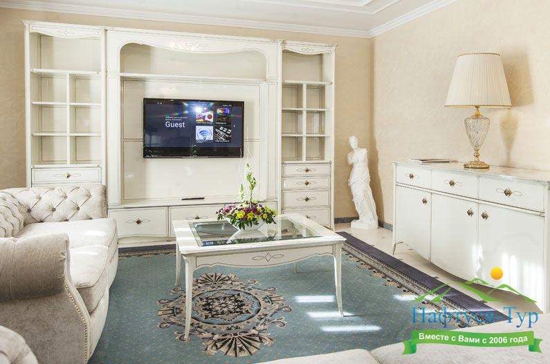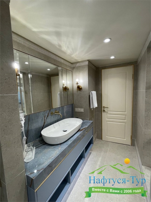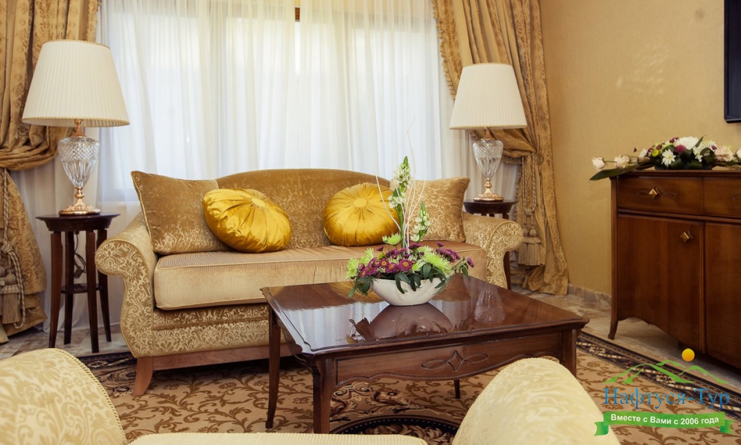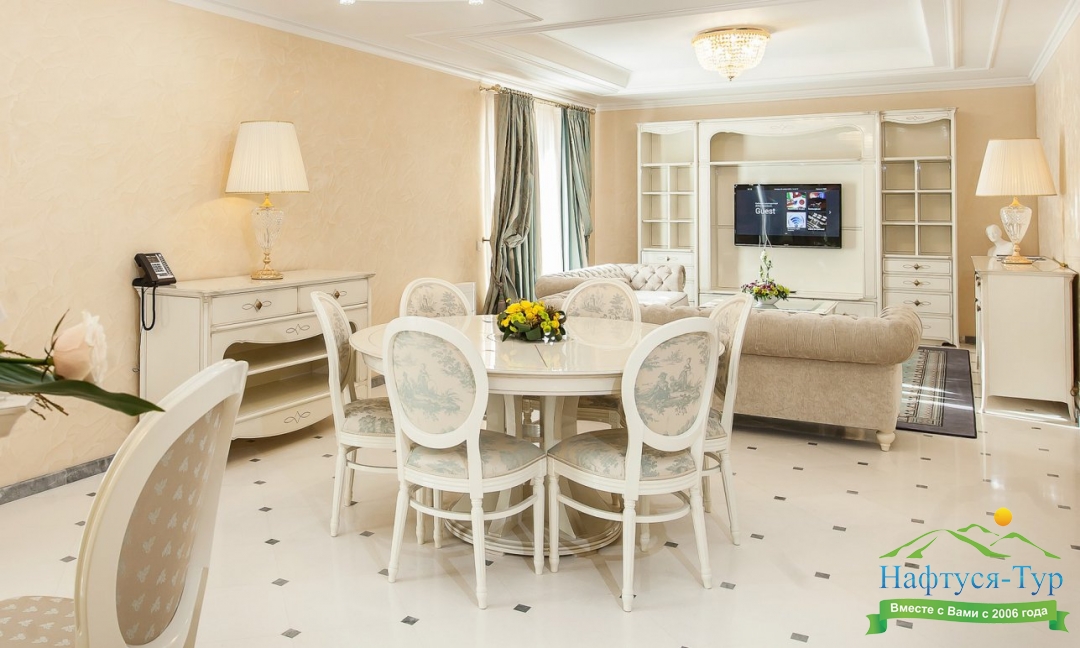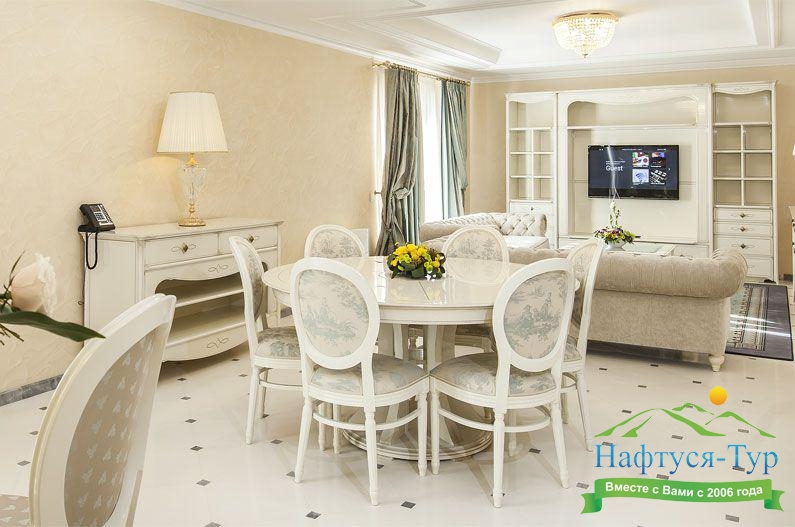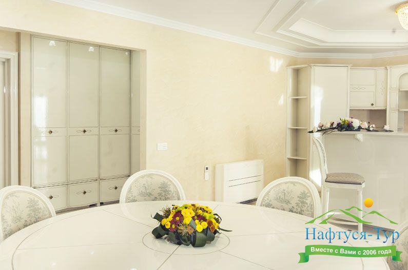 Отдыхали с подругой из Москвы, предварительно бронировали у компании Нафтуся-тур и приехали на отдых. Это был сентябрь 2015 года. Быстро заселили (было предварительное бронирование, удобно). Номера неплохие, чистенькие, только могли бы быть и побольше. И балконов нет, кажется, ни в одном номере, жаль. Маленькая ванная, хотя все принадлежности для мытья и полотенца – без нареканий. Уборка тоже была хорошей и без лишних напоминаний. Мы вообще любим чистоту – придраться не к чему. Кормили просто прекрасно, всего много и очень вкусно. Иногда ходили в бар рядом с бассейном – немного дороговато. Пляж маленький и до него спускаться под горку – людям с детьми было не очень удобно, особенно подниматься обратно. Хотя летом раз в полчаса ходит «маршрутка» - можно пользоваться. В общем, неплохо, хоть цены и кусаются.