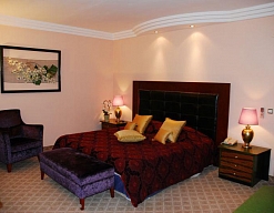 кресла, кровать двуспальная, прикроватные тумбочки, стол, шкаф