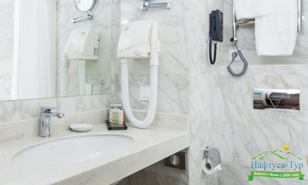 с ванной, туалетные принадлежности, фен